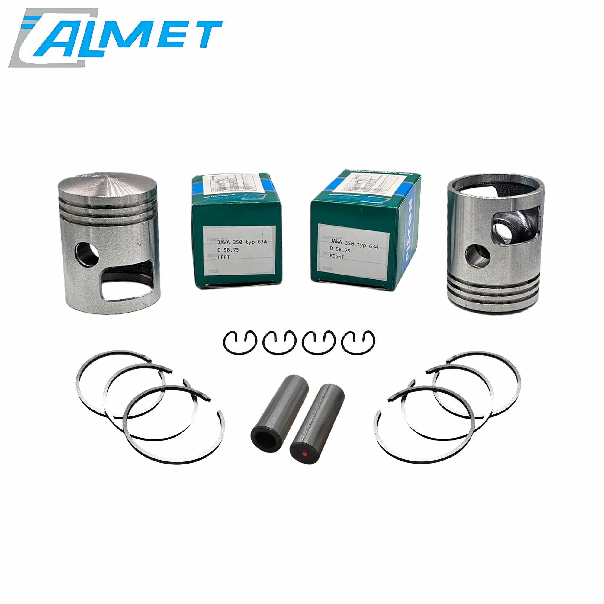 Поршень на мотоцикл Ява 350 638 , 639 , 640 (12В) 3 ремонт ALMET (Чехия) 58.75 пара в сборе с кольцами и пальцами, JAWA 350 638