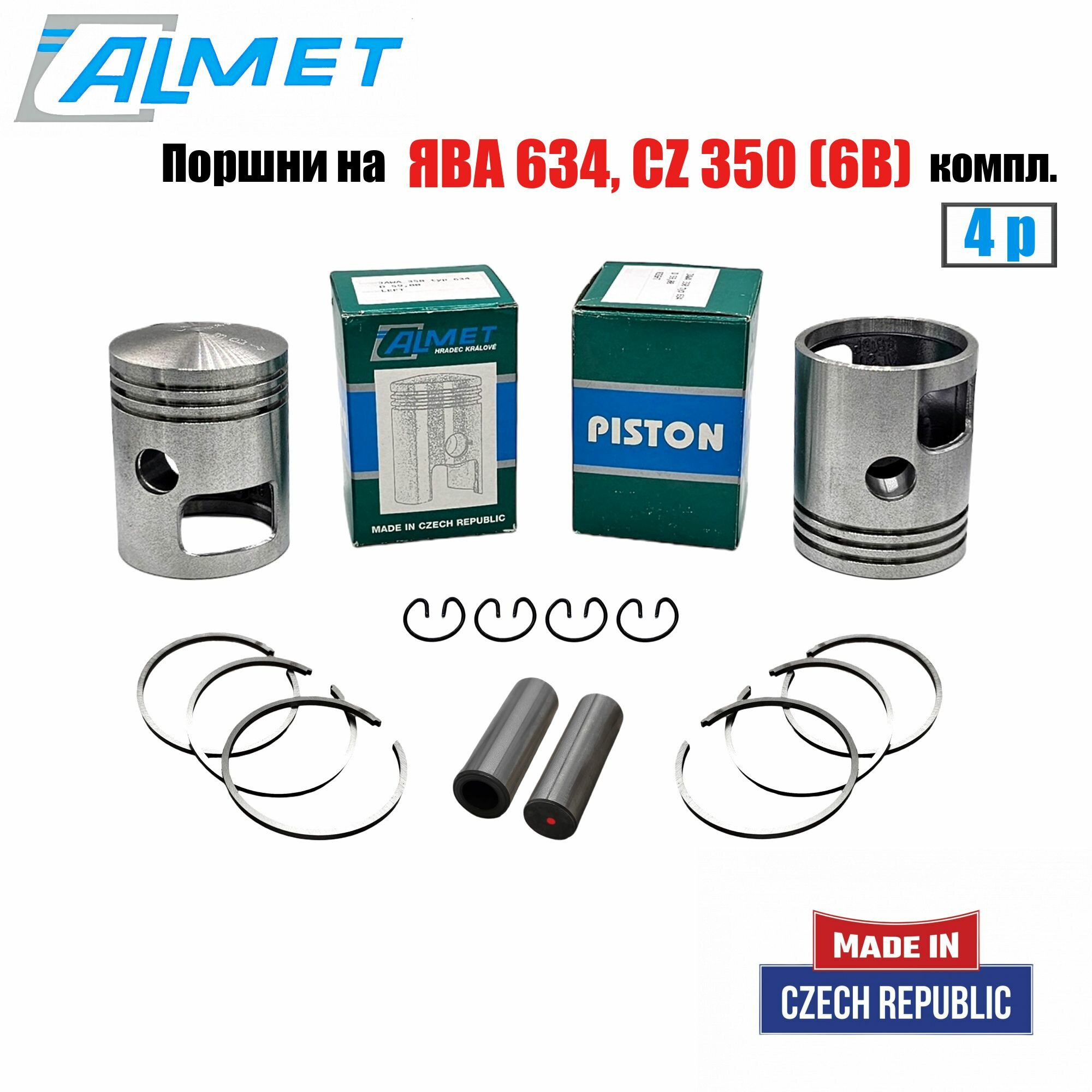 Купить Поршень на мотоцикл Ява 350 634, CZ 350, 4 ремонт (6В) ALMET (Чехия) 59.00 пара в сборе с кольцами и пальцами, JAWA 350 634 , Чезет