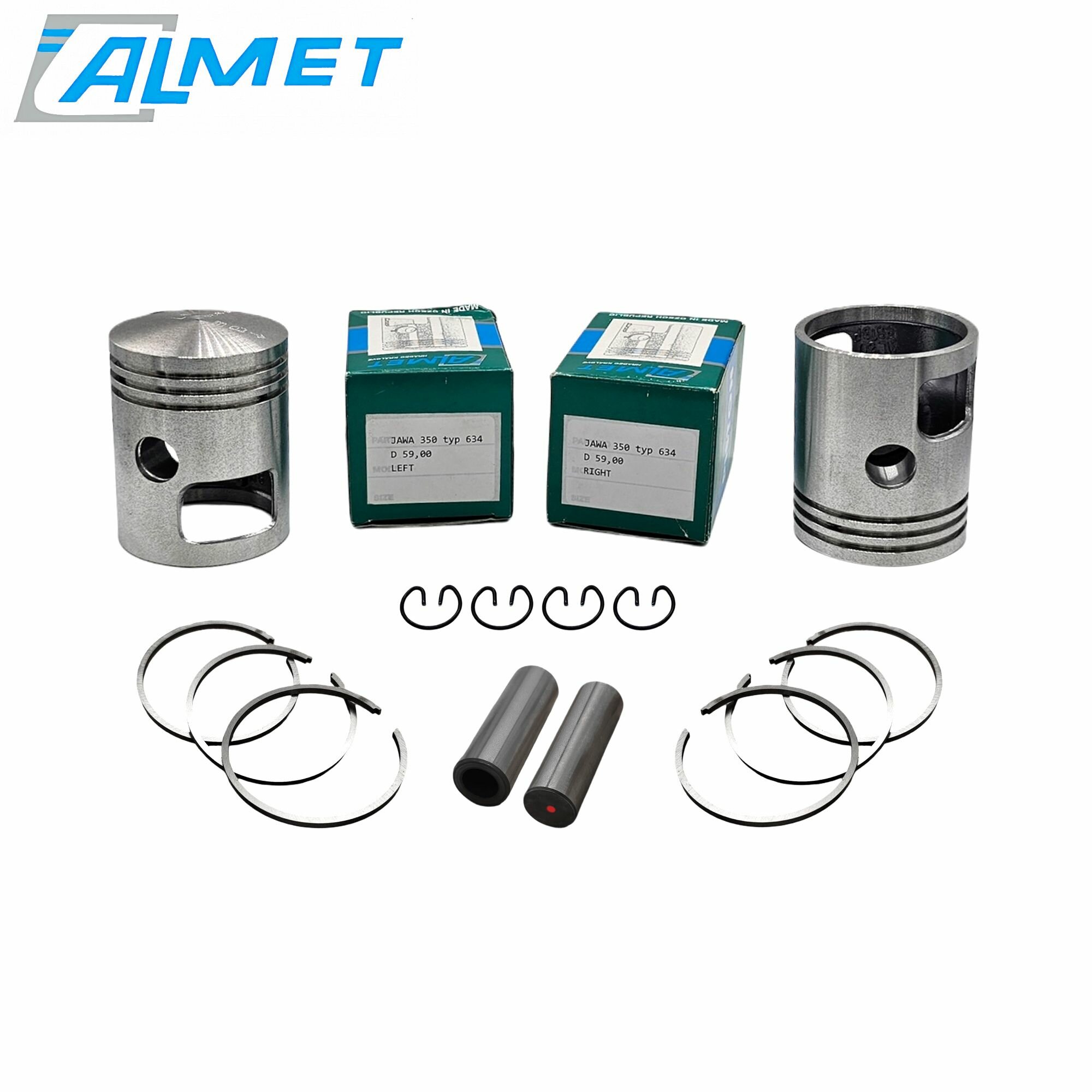 Поршень на мотоцикл Ява 350 634, CZ 350, 2 ремонт (6В) ALMET (Чехия) 58.50 пара в сборе с кольцами и пальцами, JAWA 350 634 , Чезет