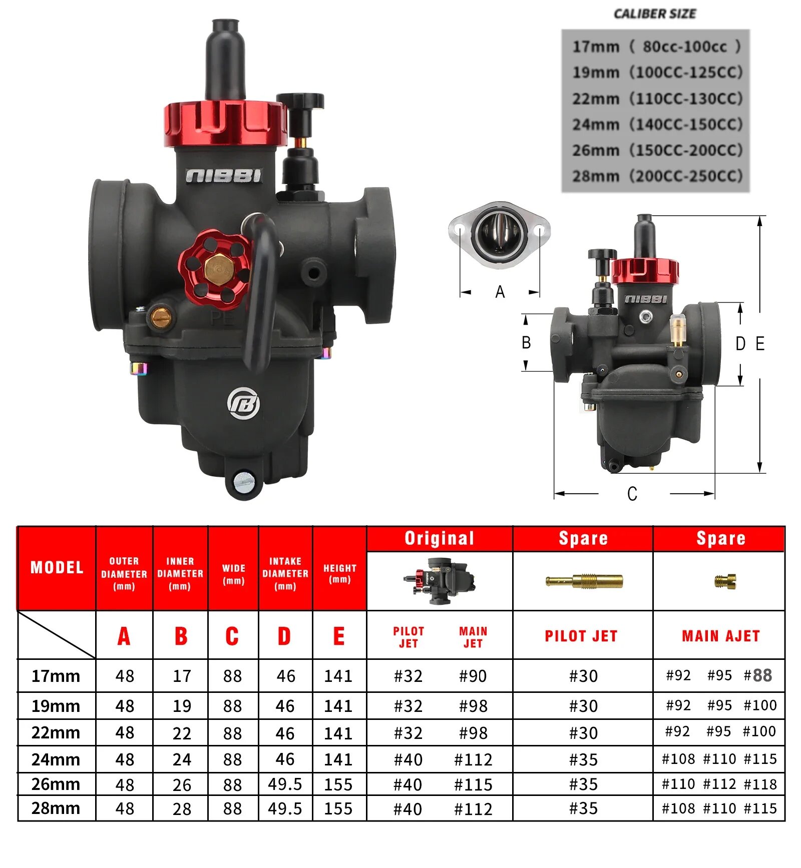 Карбюратор nikeo для двигателя 50-350 куб. См 2T 4T, ПЭ фланец, карбюраторы для Мотоциклов GY6 YAMAHA JOG SUZUKI HONDA Atv Pitbike, PE 17mm Silvery