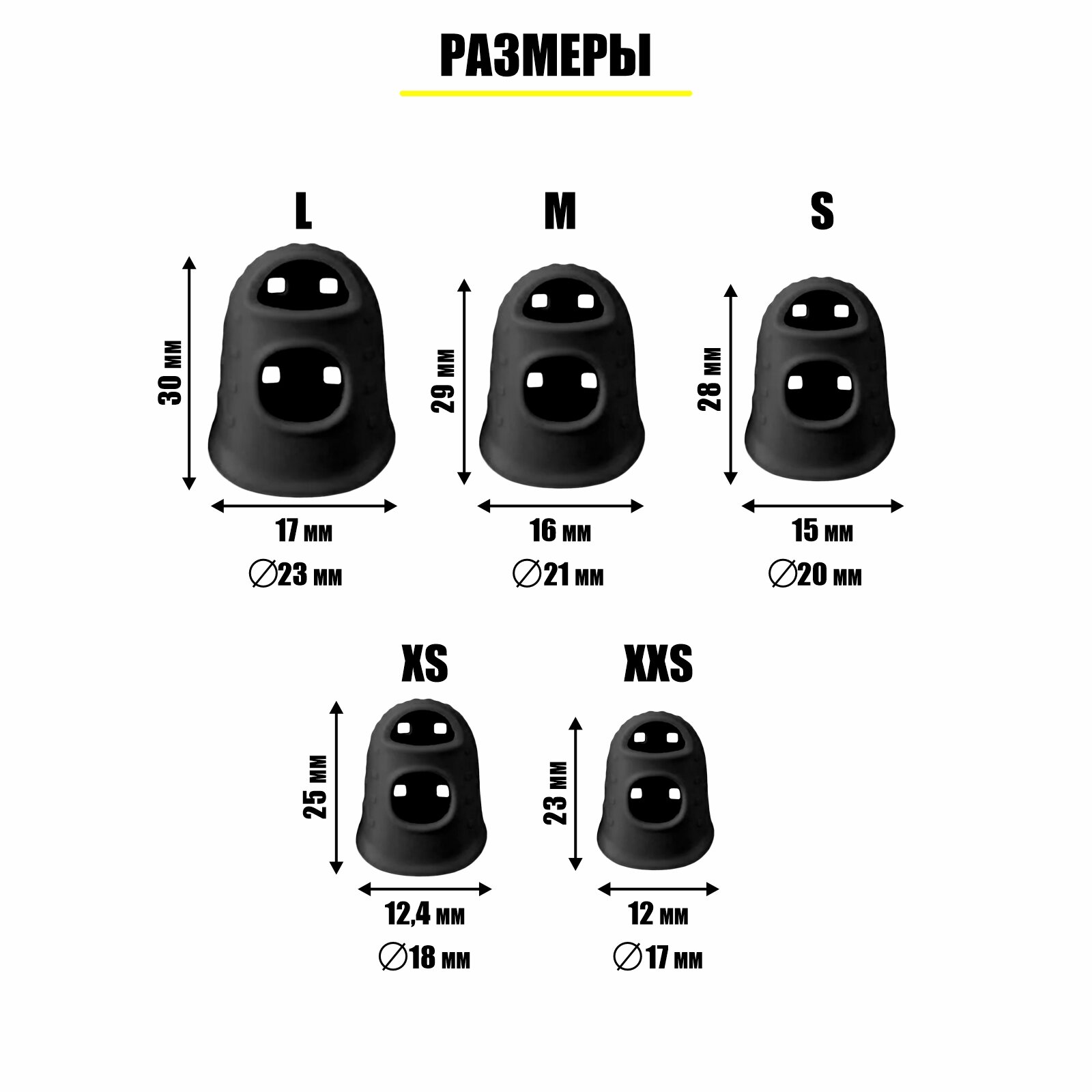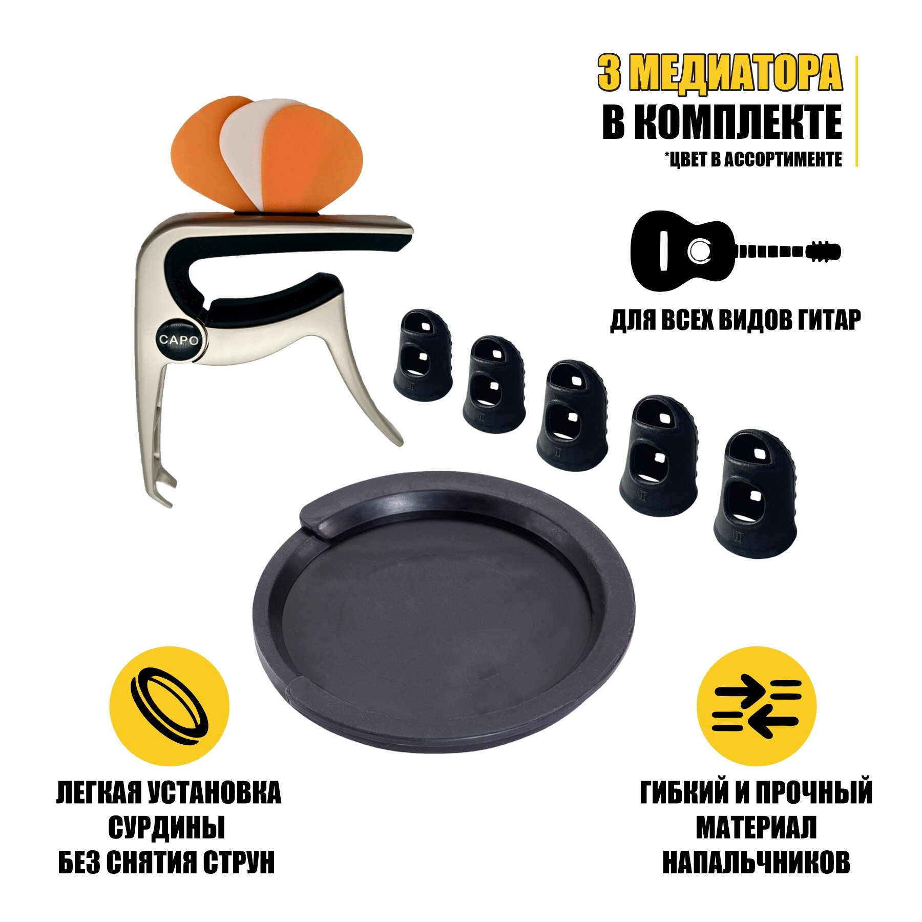 Сурдина, каподастр и напальчники силиконовые черные для игры на струнных, размер XXS, XS, S, M, L, 5 шт интересное: