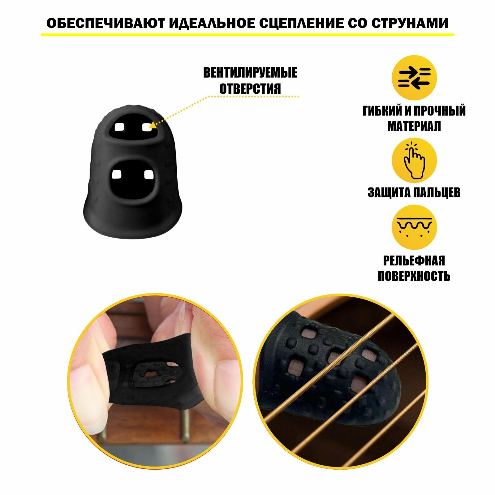 Купить Сурдина, каподастр и напальчники силиконовые черные для игры на струнных, размер XXS, XS, S, M, L, 5 шт