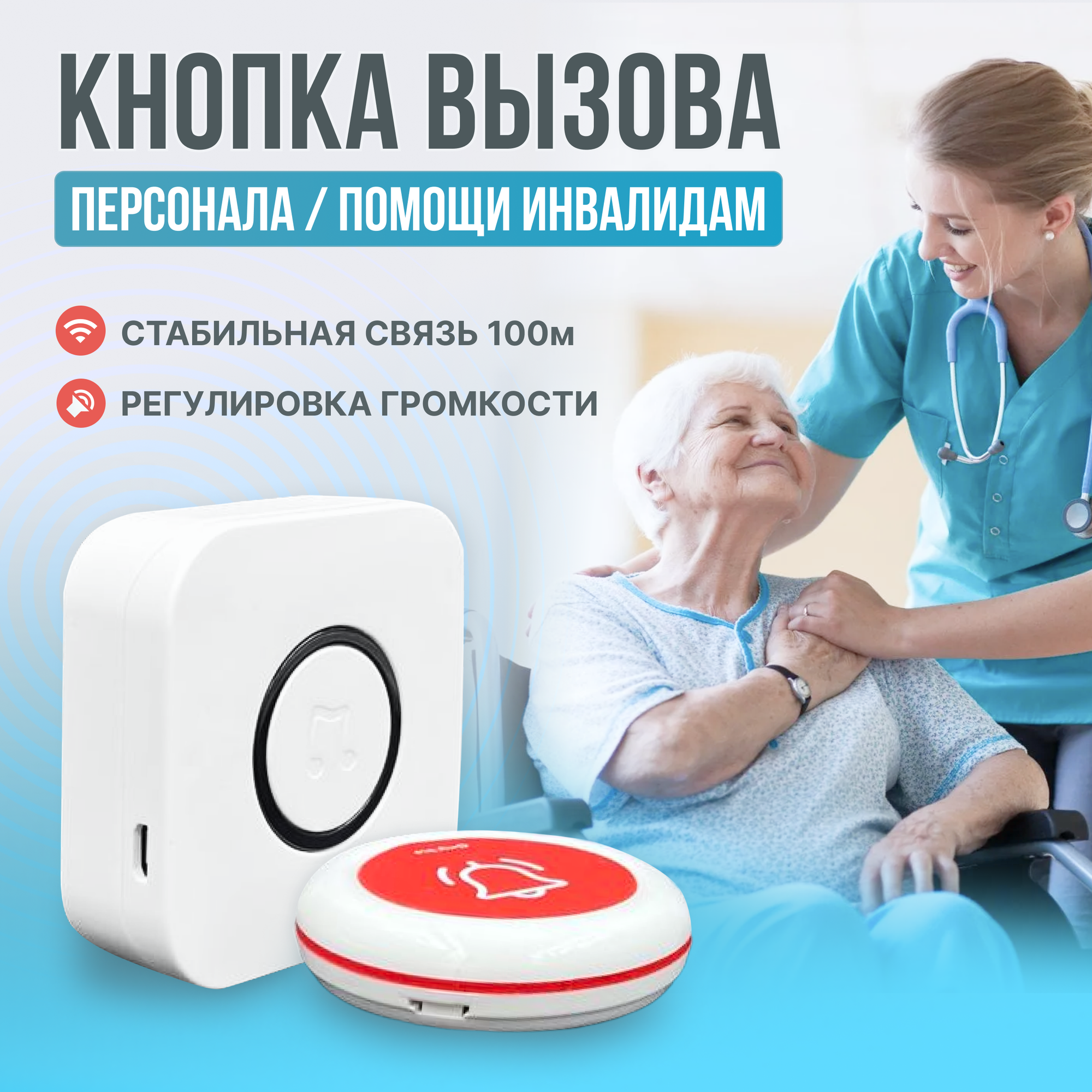 | Состав комплекта | кнопка вызова / приёмник сигнала |