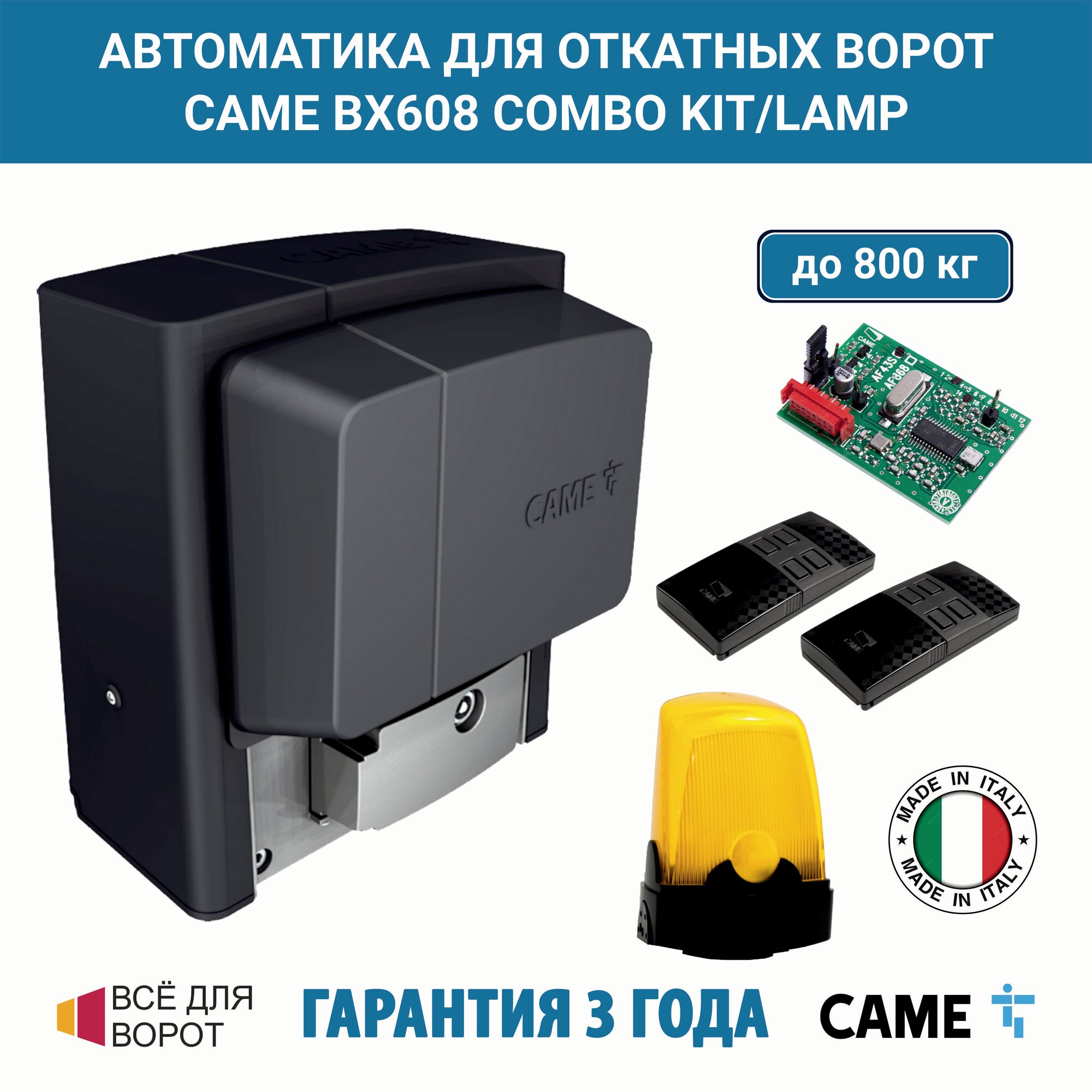 Купить Автоматика для откатных ворот Came BX608AGS COMBO KIT/LAMP на основе привода BX608 (встроенный блок управления ZBX6N, радиоуправление, лампа)