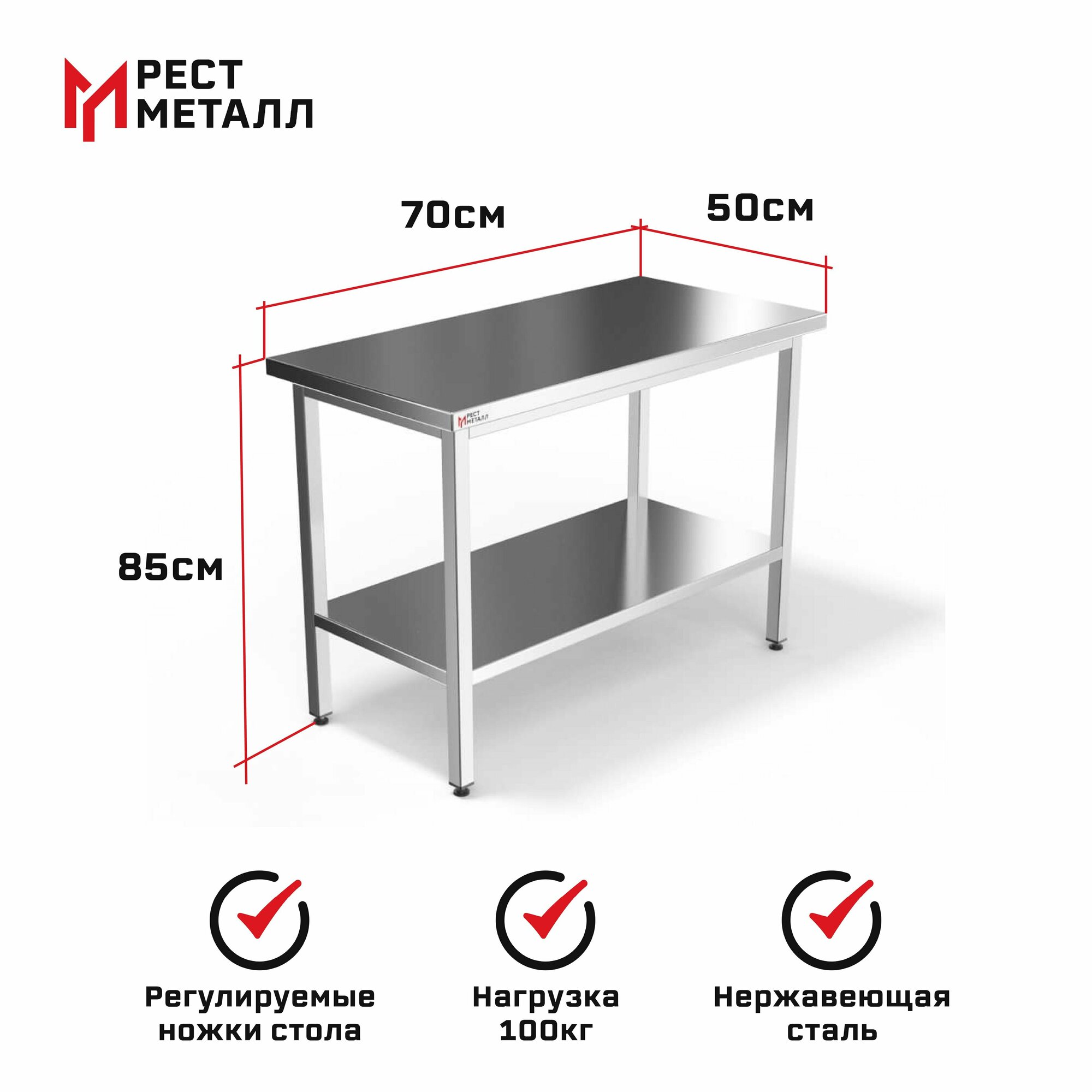 Стол производственный островной 700*500*850 серия Стандарт, столешница нержавеющая сталь, толщина 0,8 мм; каркас разборный, сплошная полка интересное: