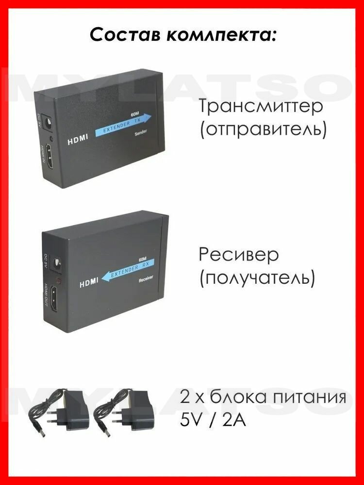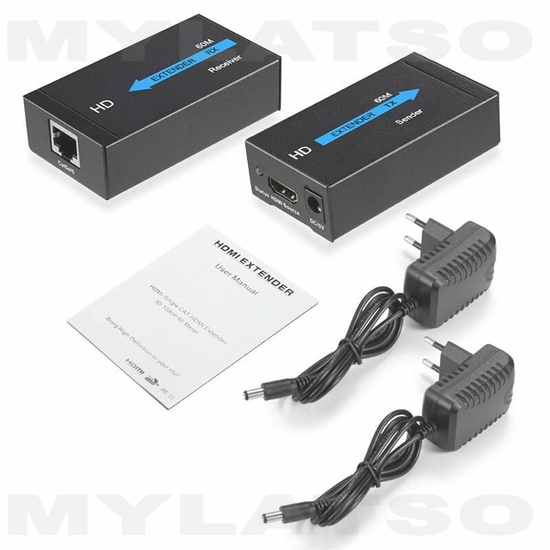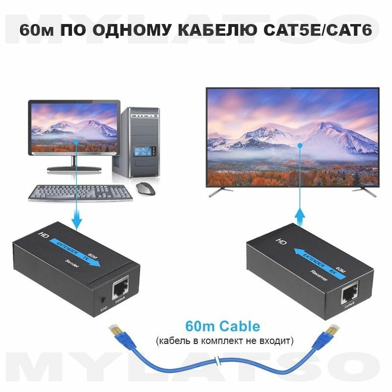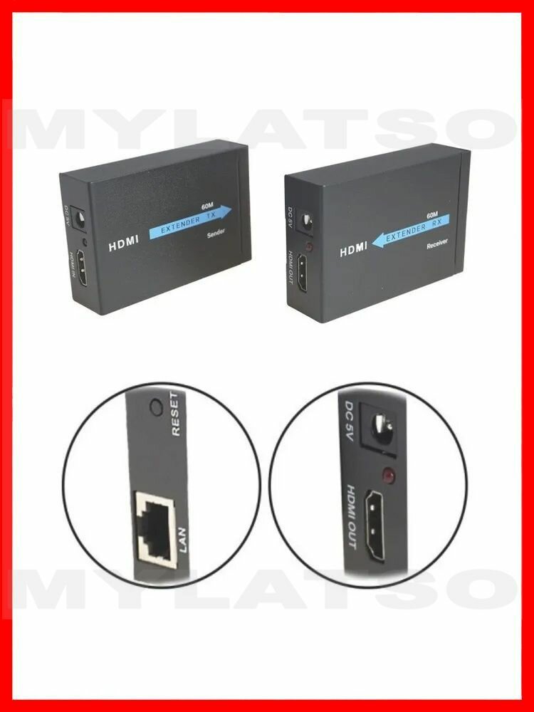 Удлинитель перереходник HDMI по витой паре видеосигнала 60м с RJ-45 cat5e cat6 интересное: