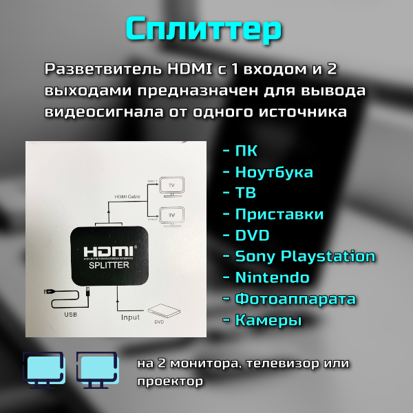 HDMI разветвитель с 1 на 2 выхода интересное: