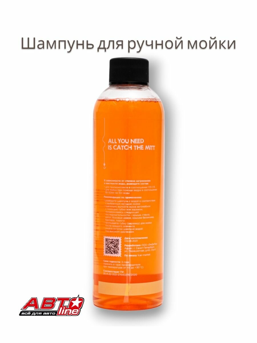 | Дополнительная информация | - разведите шампунь с водой в соответствии с выбранным методом мойки - тщательно вымойте кузов автомобиля с помощью губки или варежки, придерживаясь следующей последовательности - крыша, стекла, капот, боковые двери, крышка багажника, бампера, пороги - промывайте губку (варежку) после каждого элемента - смойте остатки шампуня водой под высоким давлением |