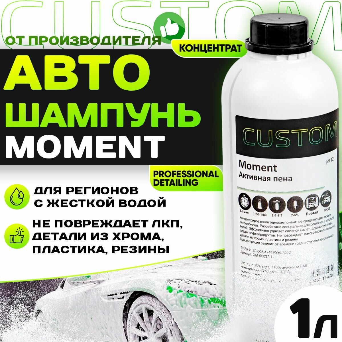 Автошампунь для бесконтактной мойки авто / для регионов с жесткой водой / CUSTOM MOMENT активная пена, 1л интересное: