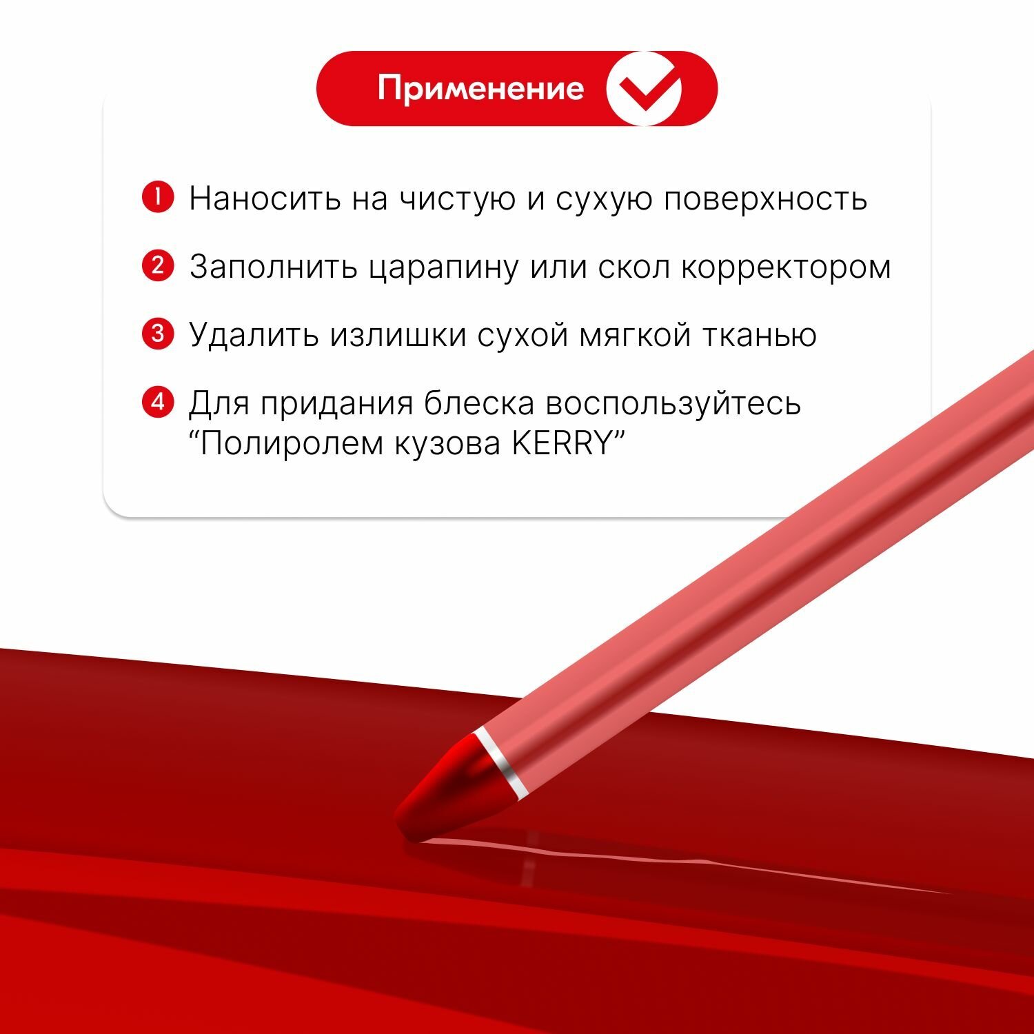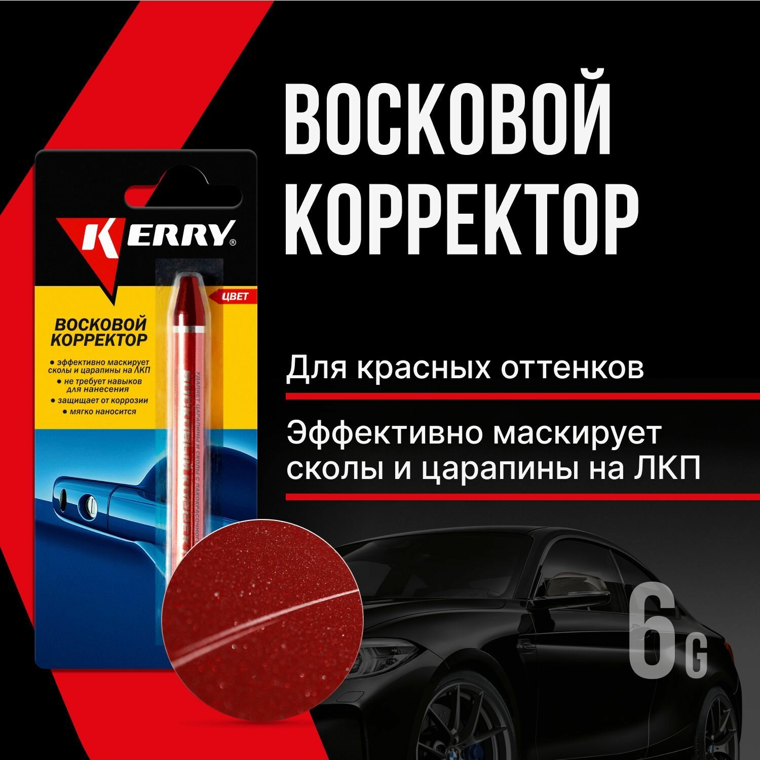 Восковой корректор KERRY, карандаш от царапин и сколов на авто, красный интересное:
