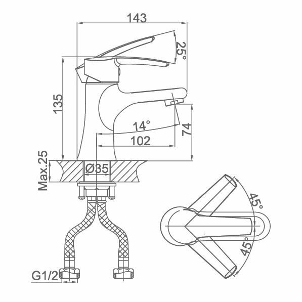 | Длина излива | 102 мм |