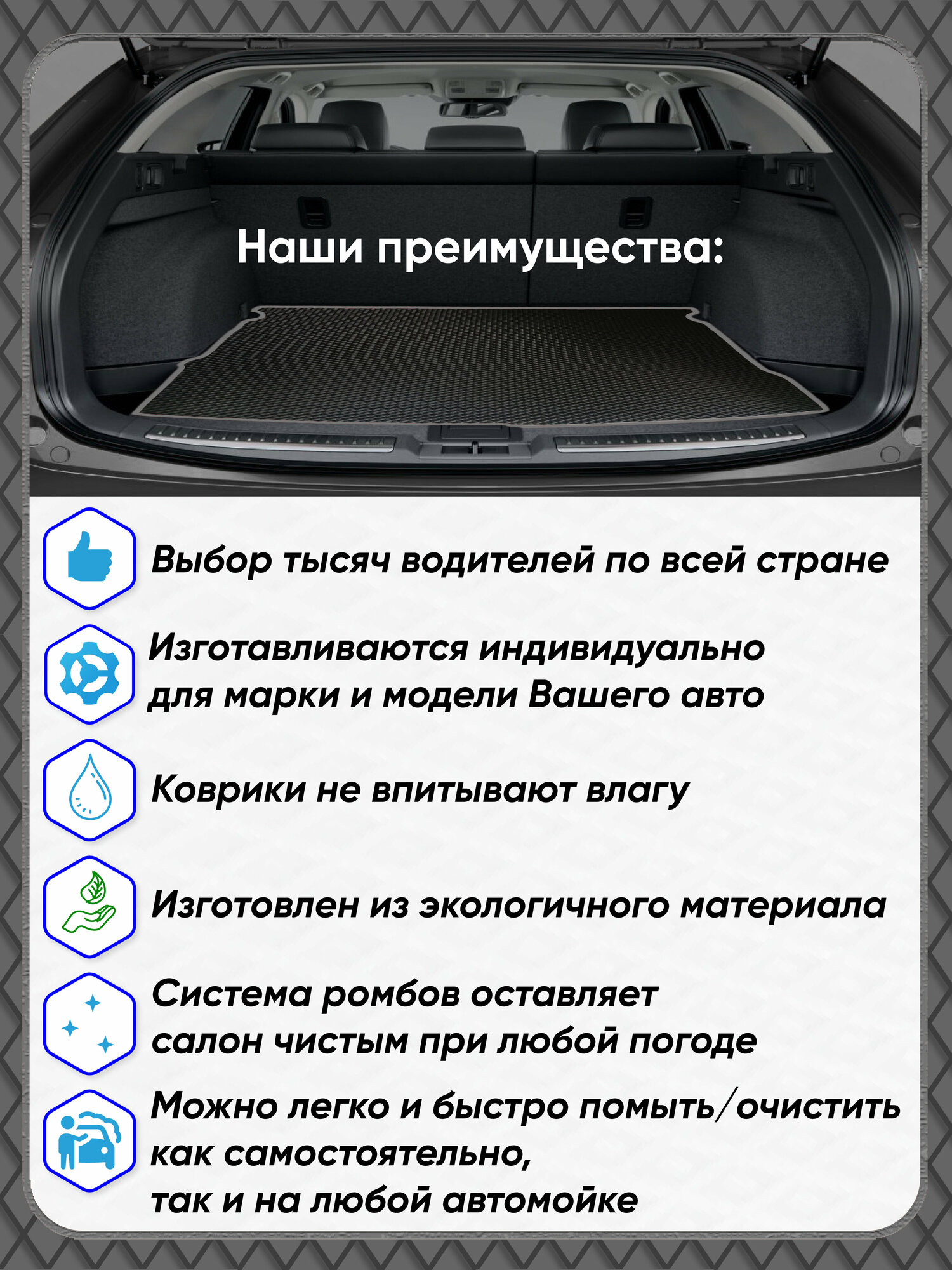 Автомобильный коврик в багажник ЕВА / EVA для Renault Megane II универсал 2002-2009/Рено Меган II универсал интересное: