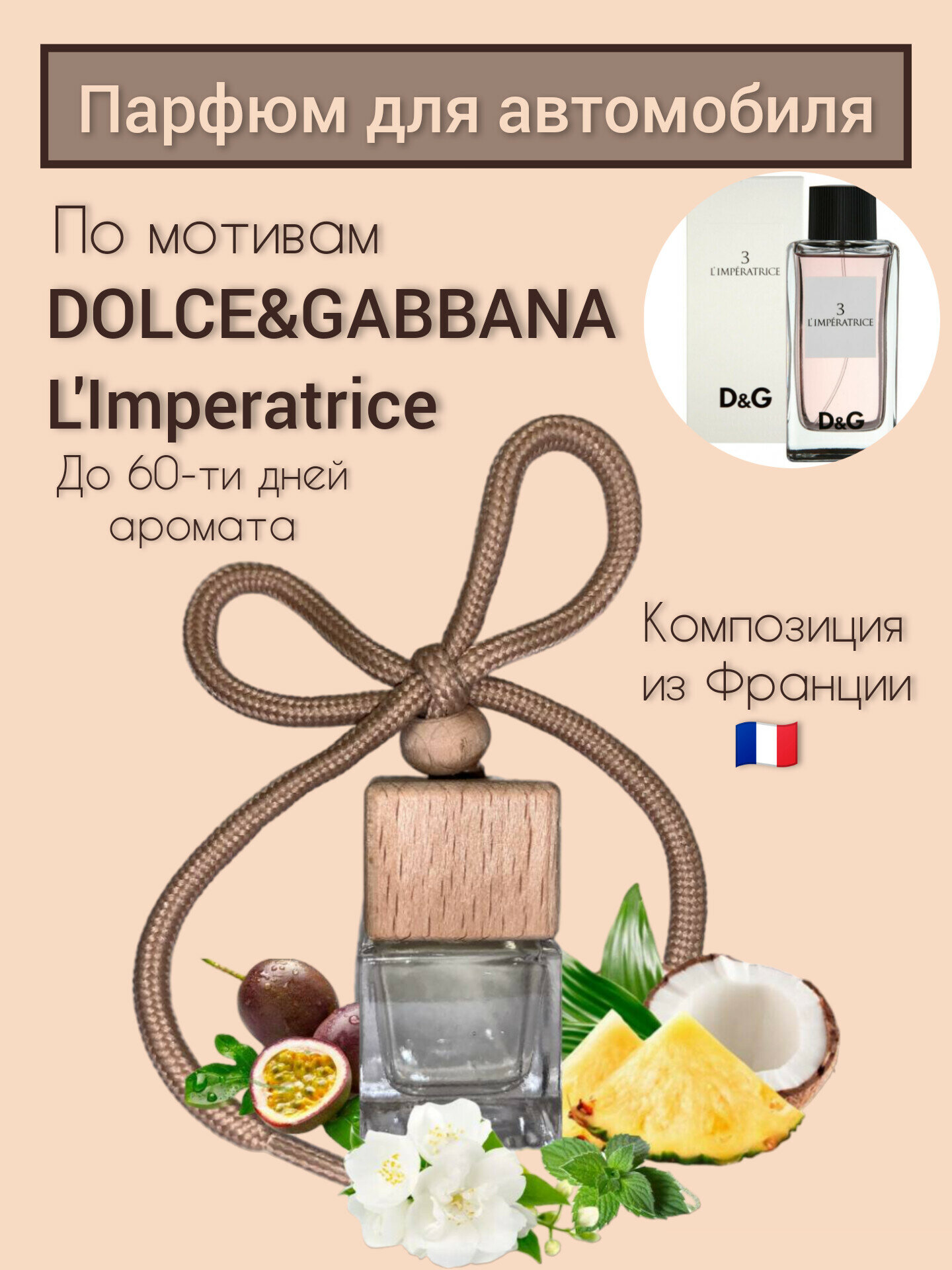Автомобильный ароматизатор "Дольче Габбана Императрица" на основе эфирных масел из Франции интересное: