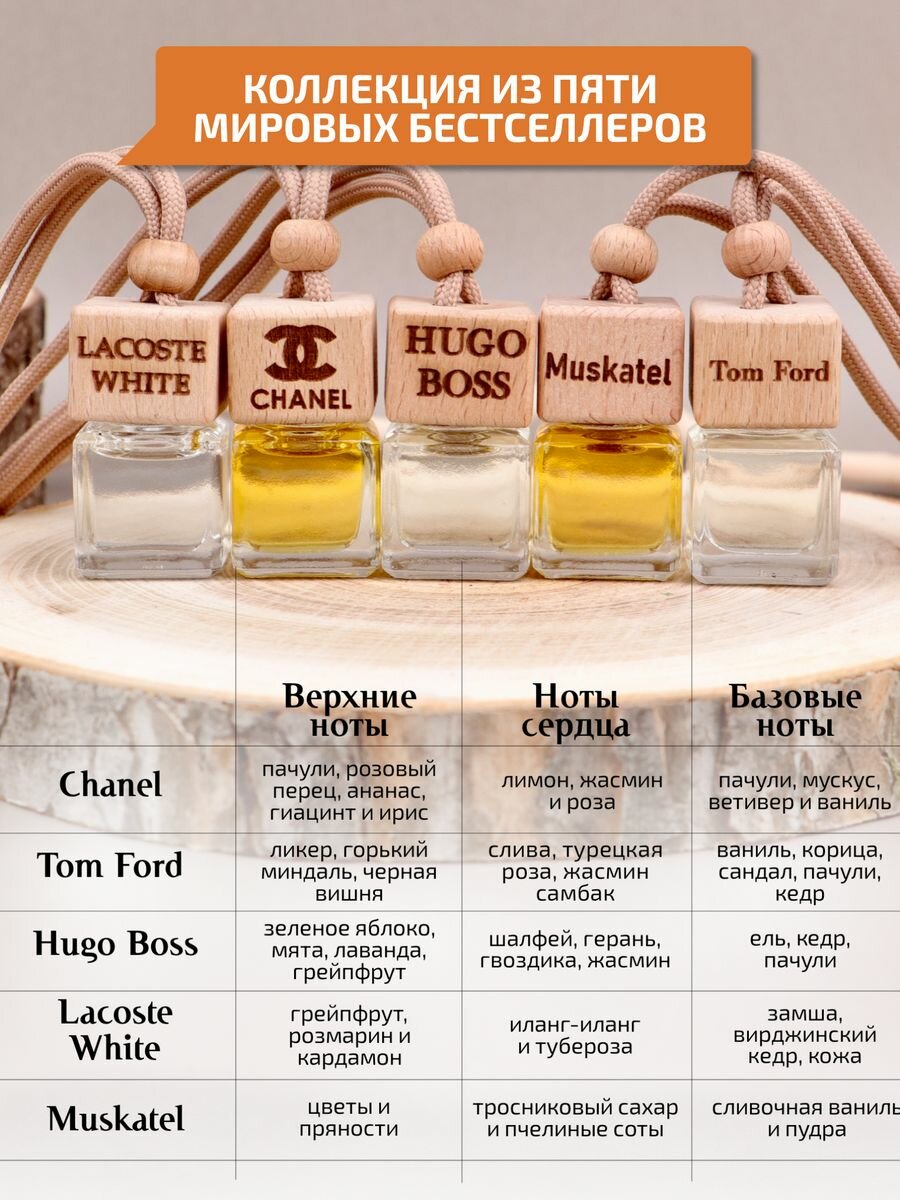 | Аромат | Chanel / HUGO BOSS / Lacoste / Muskatel / Tom Ford |