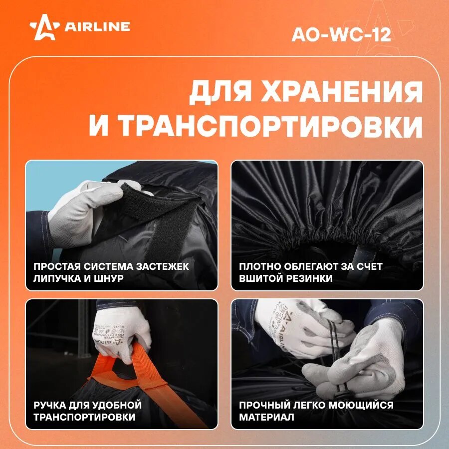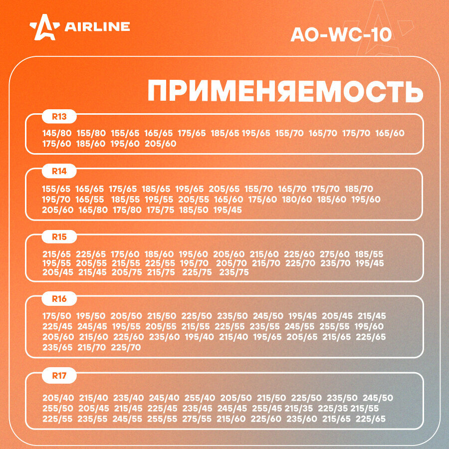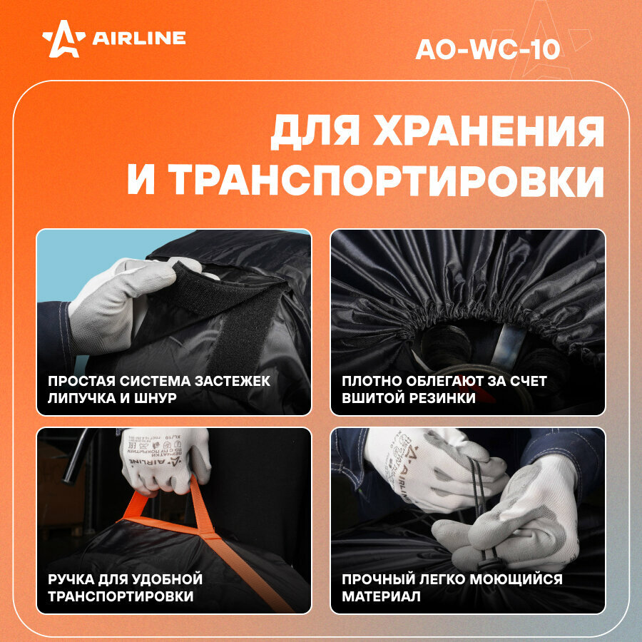 Чехлы для колес, размер R 13-17", комплект 4 шт., цвет черный/оранжевый AO-WC-10 AIRLINE интересное: