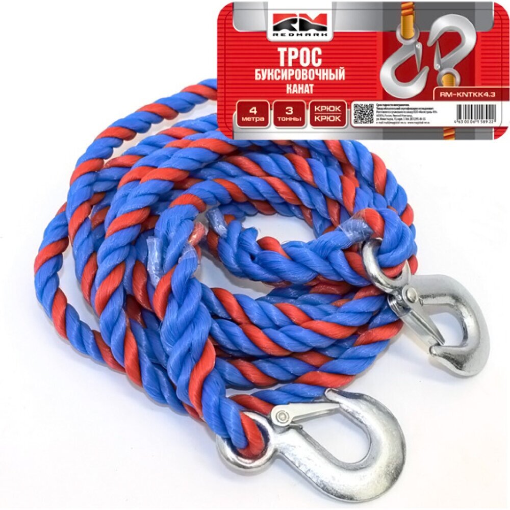 Трос буксировочный канат (4 м 3 т.) крюк/крюк "RedMark" интересное: