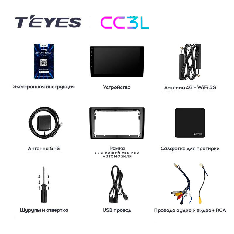 | Подробная комплектация | головное устройство, переходная рамка, комплект проводов для подключения к авто, GPS Антенна, 4G Антенна, USB провод, провода аудио и видео, шурупы и отвертка, схема подключения проводов, электронная инструкция |