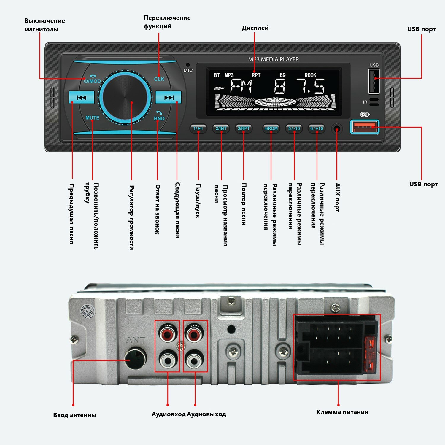 Автомагнитола, автомагнитола с блютуз, автомобильная магнитола, магнитола в машину, радио, USB на передней панели, bluetooth, AUX, пульт ДУ интересное:
