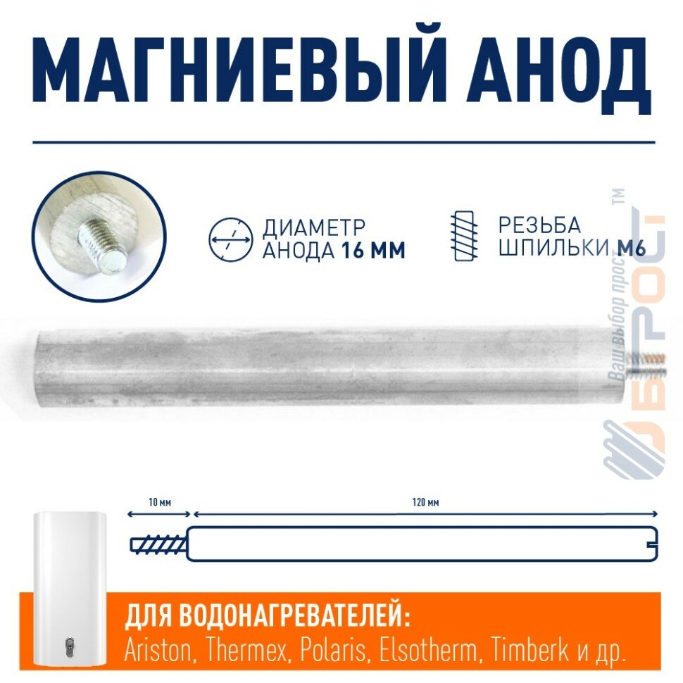 Анод магниевый для водонагревателя Ariston, Thermex, Polaris, Elsotherm, Timberk 120мм резьба M6, 100405 интересное: