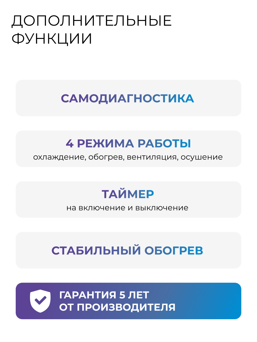 | Дополнительные режимы | авто / вентиляция / ночной / осушение / турбо |
