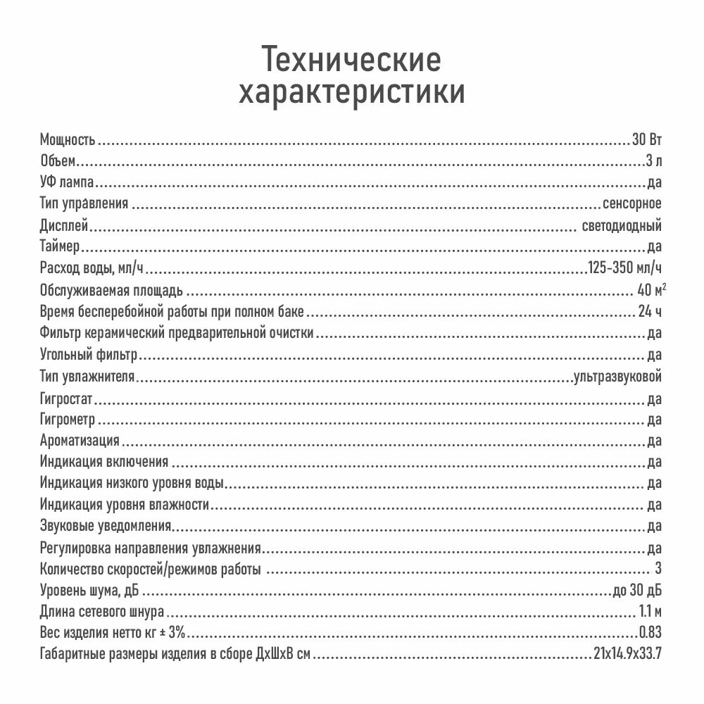 | Тип увлажнителя | ультразвуковой |