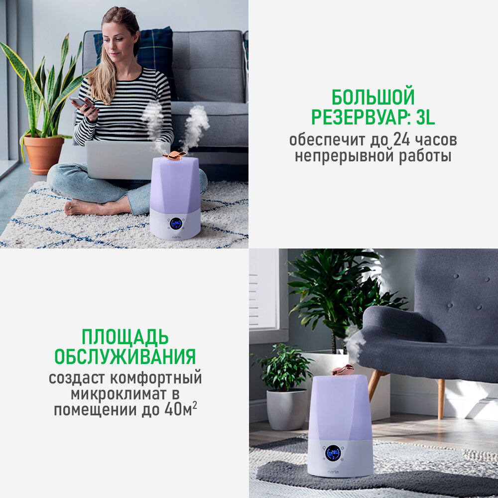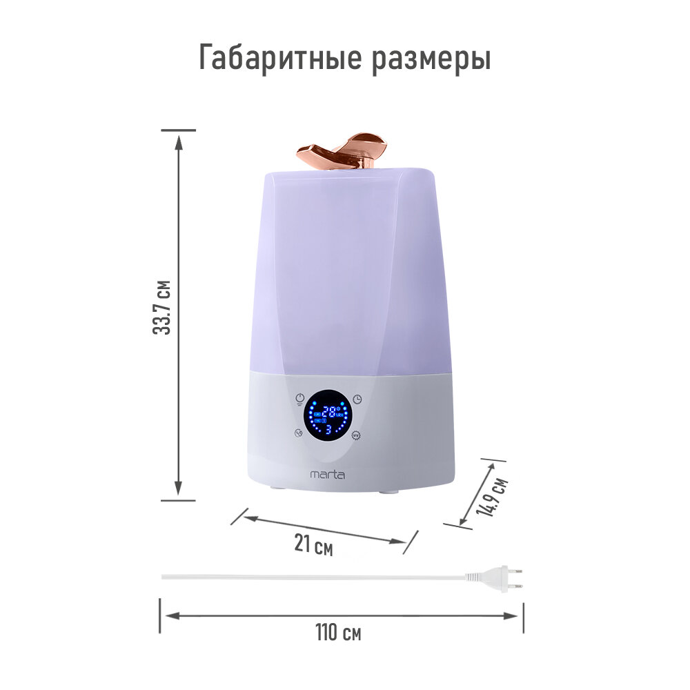 Увлажнитель воздуха с антивирусной УФ-лампой MARTA MT-HF4700B белый/медь интересное: