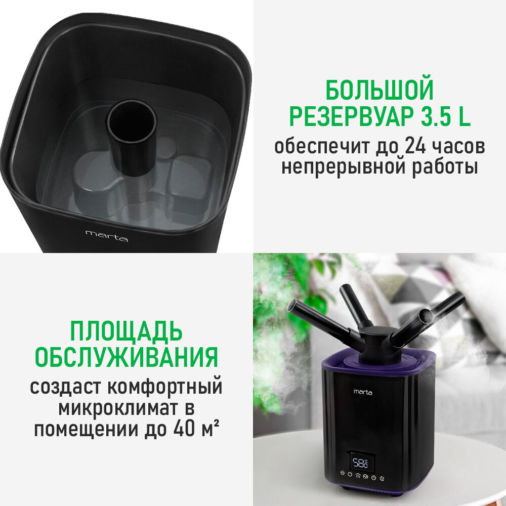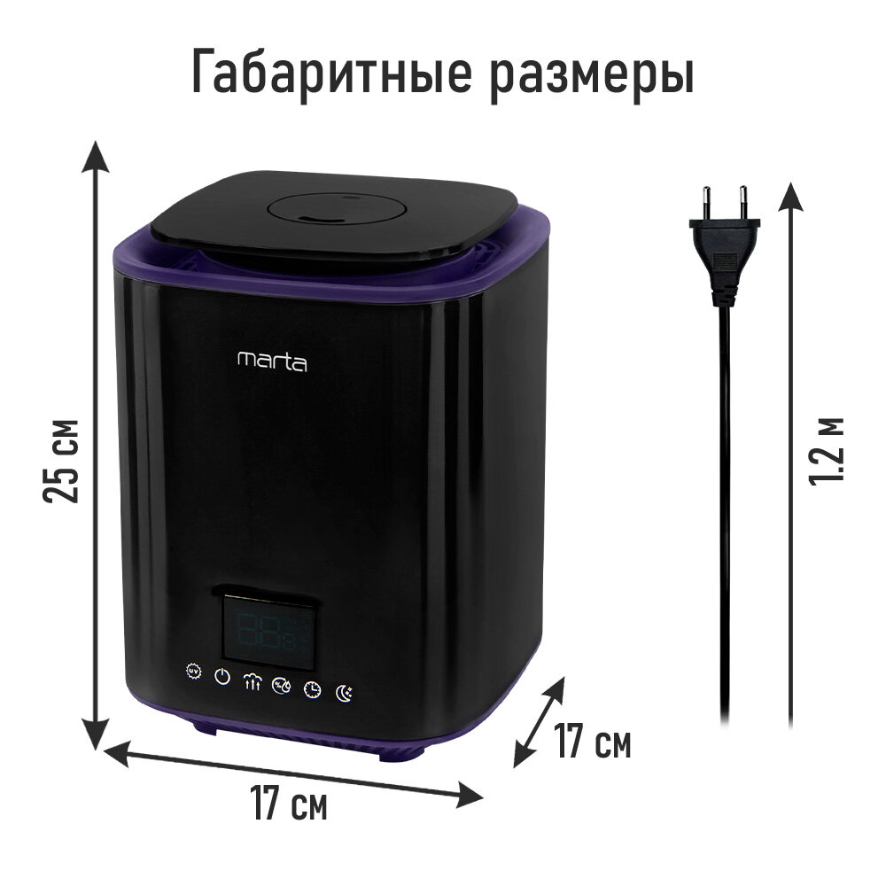 MARTA MT-HF4707B черный/фиолетовый увлажнитель воздуха интересное: