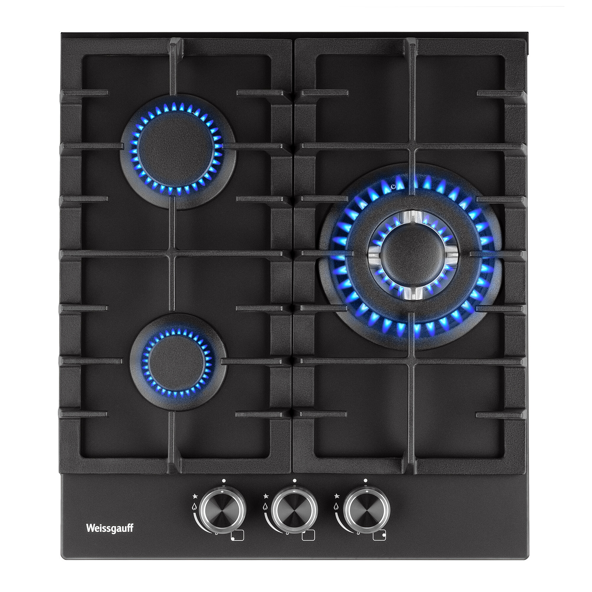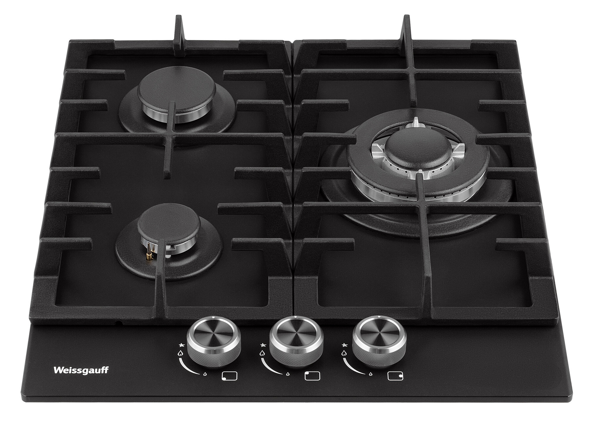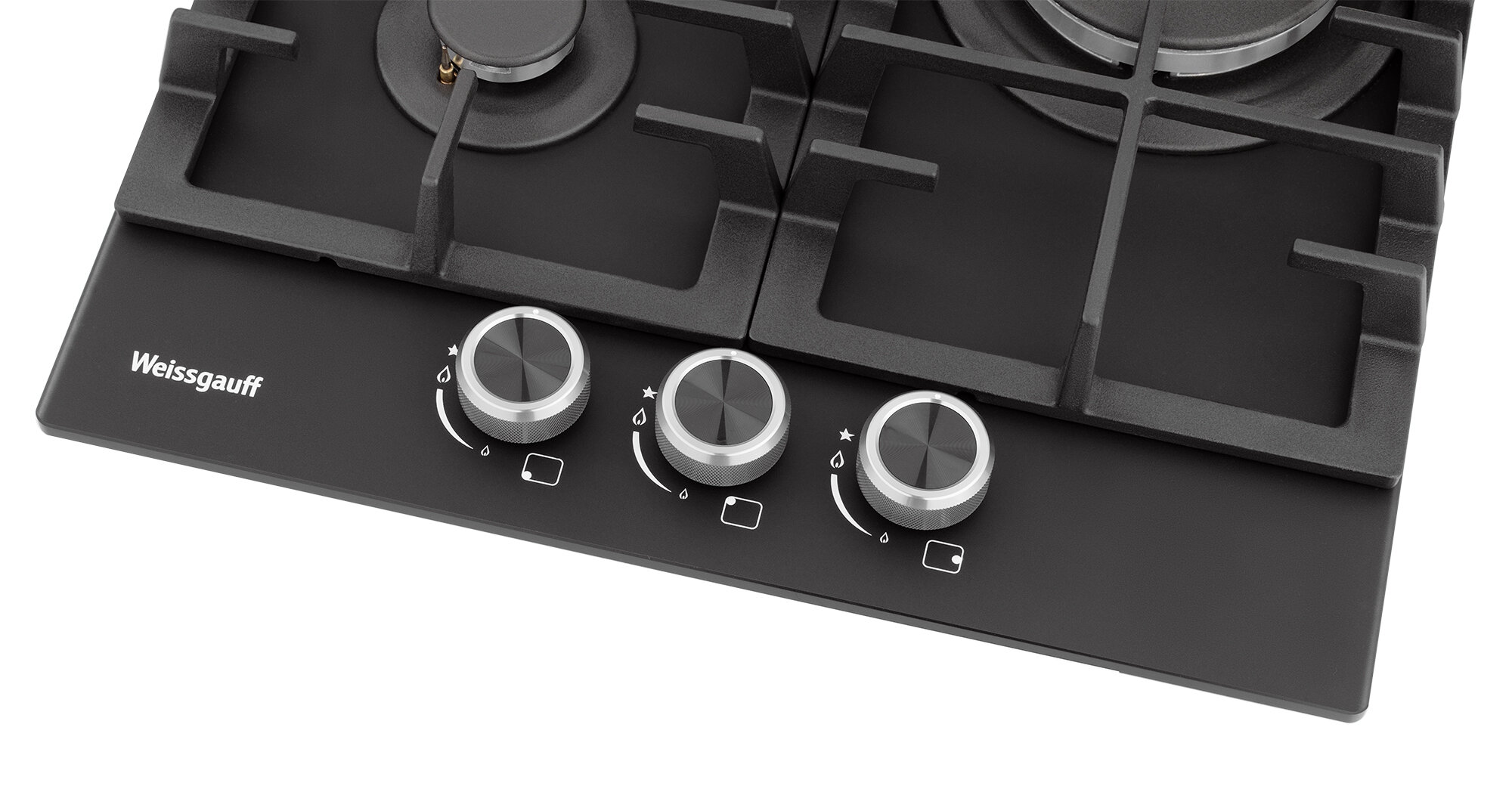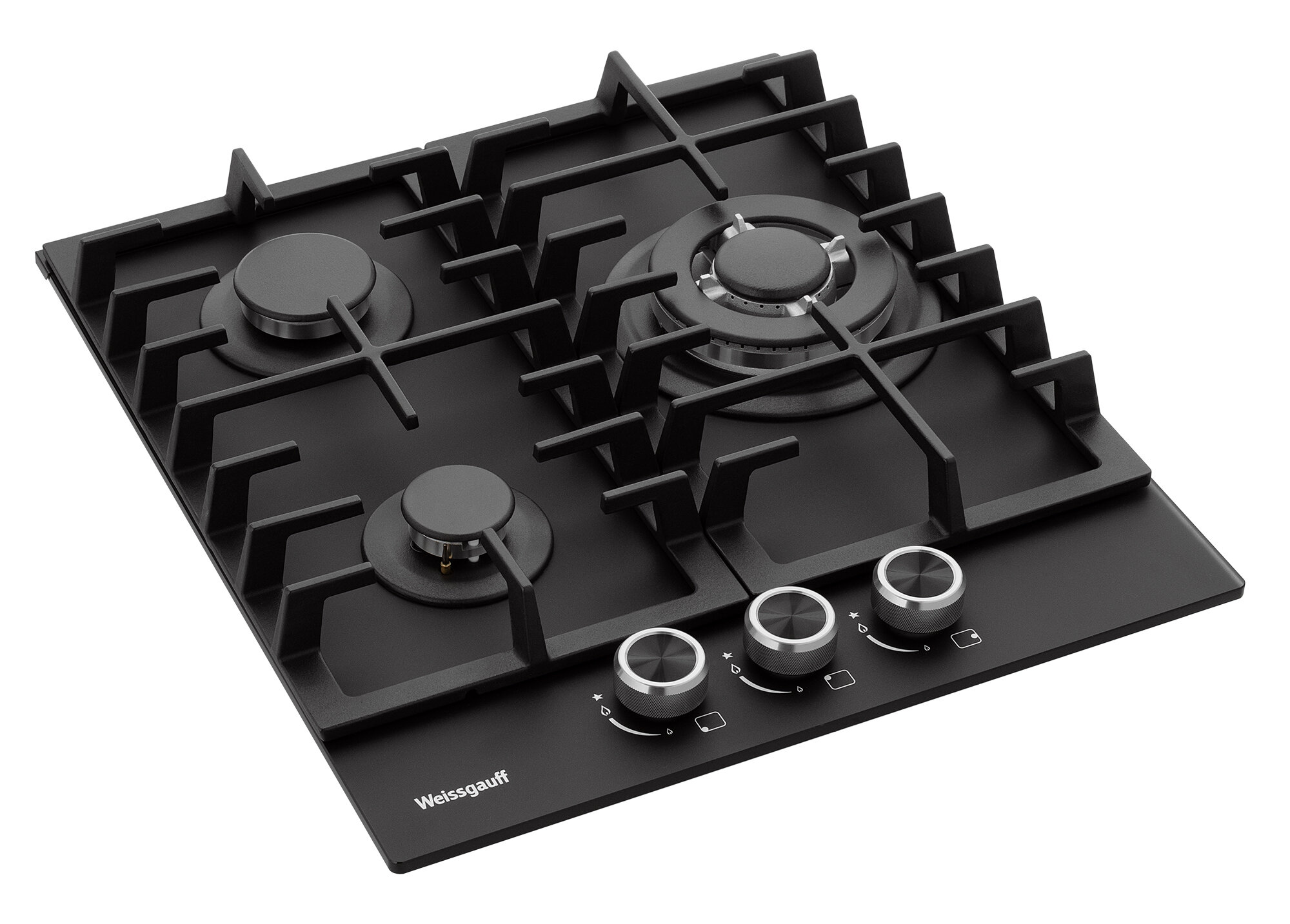 Купить Варочная панель Weissgauff HGG 451 BFh Nano Matt Glass wok-конфорка, 3 года гарантии, 45 см ширина, Чёрное закаленное стекло с покрытием NanoGlass, Автоматический электроподжиг, газ-контроль, решетки из чугуна, Рукоятки Hi-Tech
