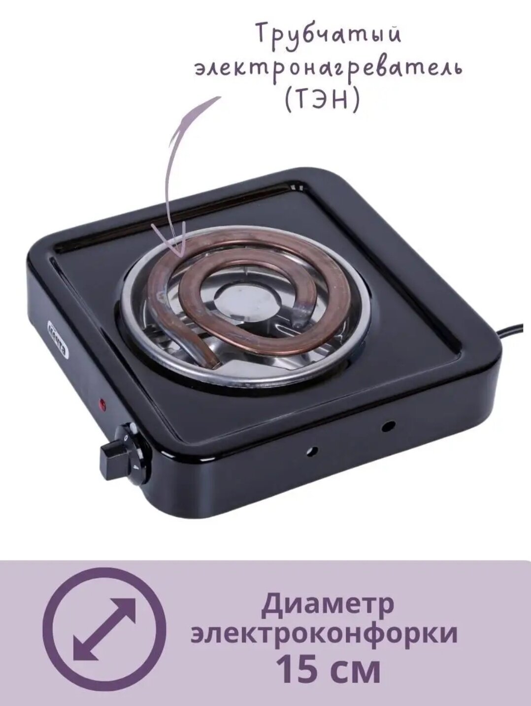 Электрическая настольная плитка чудесница ЭЛП-804, 1500 Вт, черный