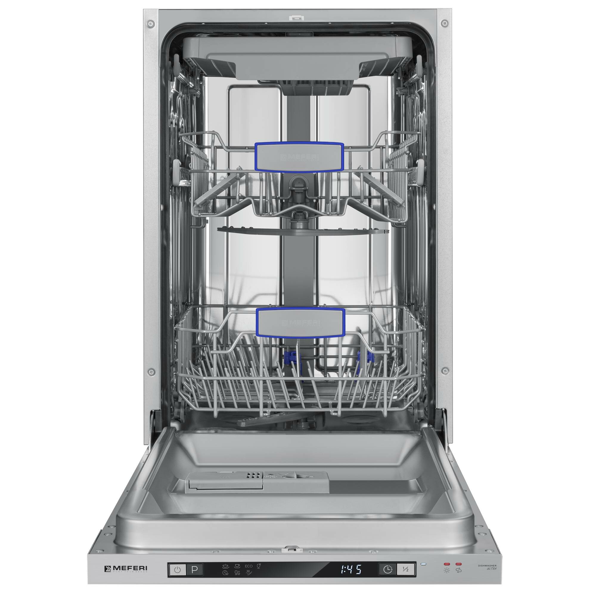 Купить Посудомоечная машина встраиваемая 45 см MEFERI MDW4573 ULTRA, луч на полу, подсветка, 3 корзины, 7 программ, 10 комплектов, защита от протечек