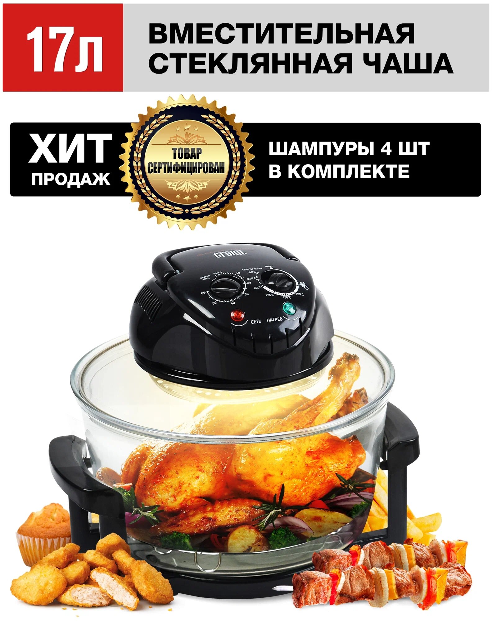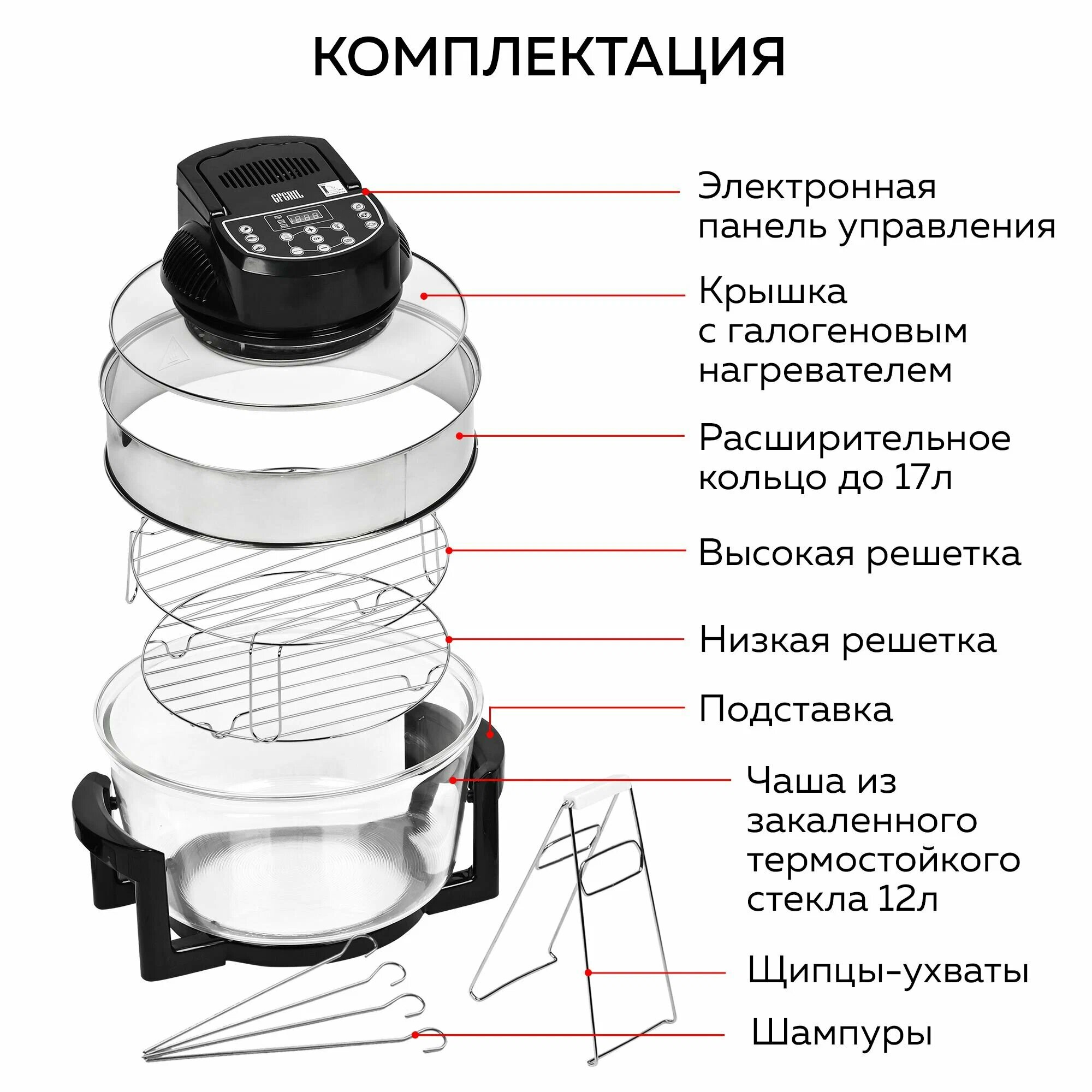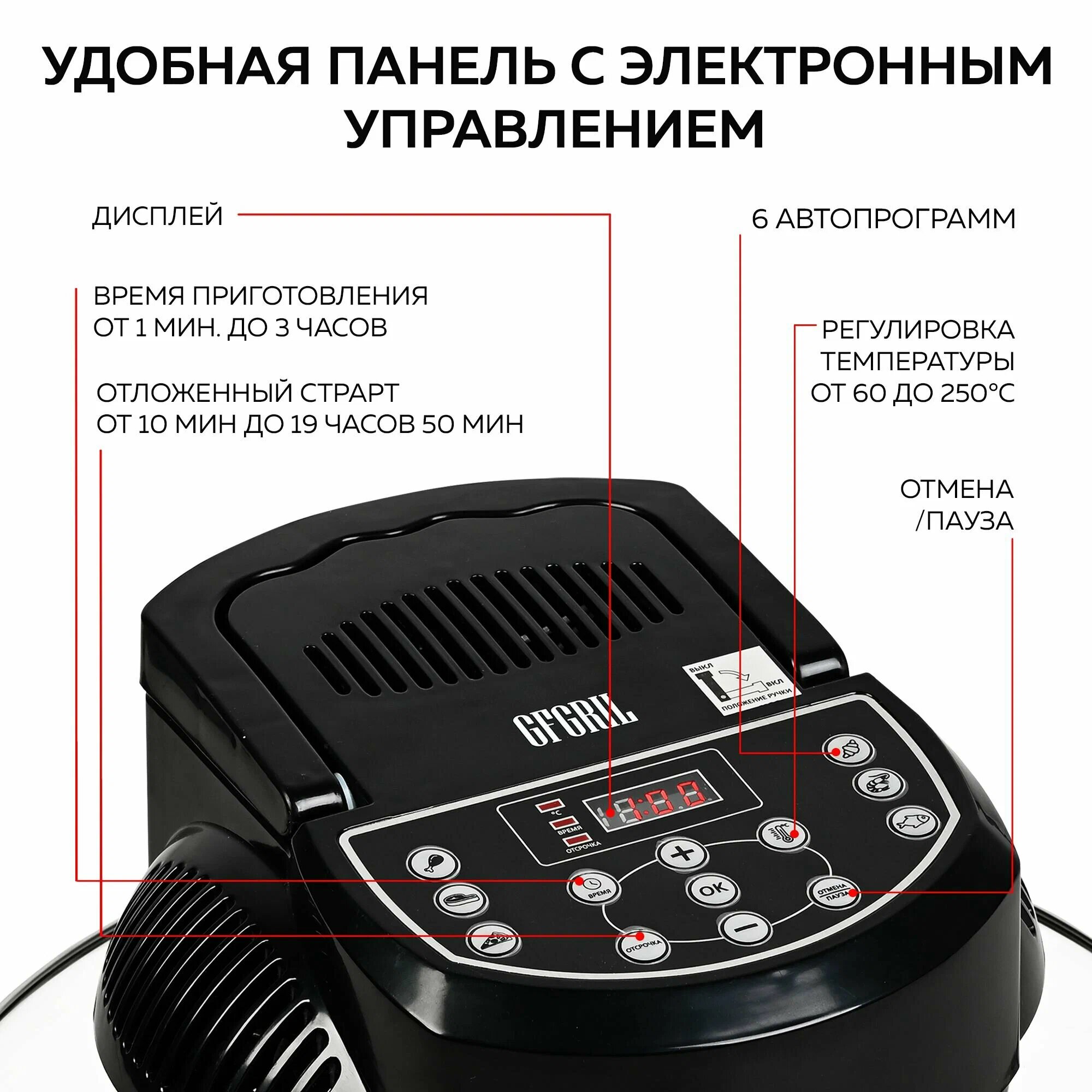 Многофункциональный электрический аэрогриль GFGRIL GFA-GL17M 12Л. + 5Л. Функции шашлычницы, самоочистки, размораживания интересное: