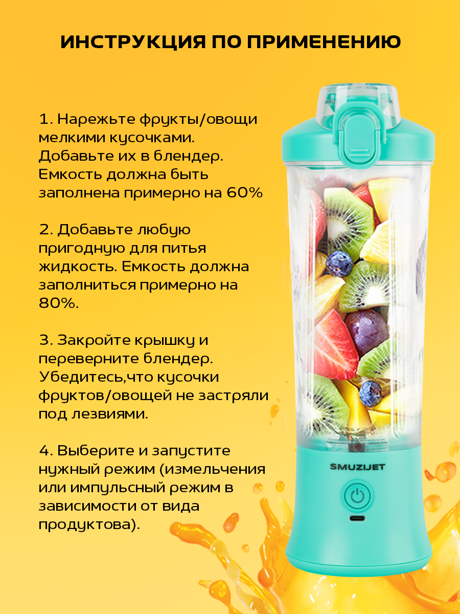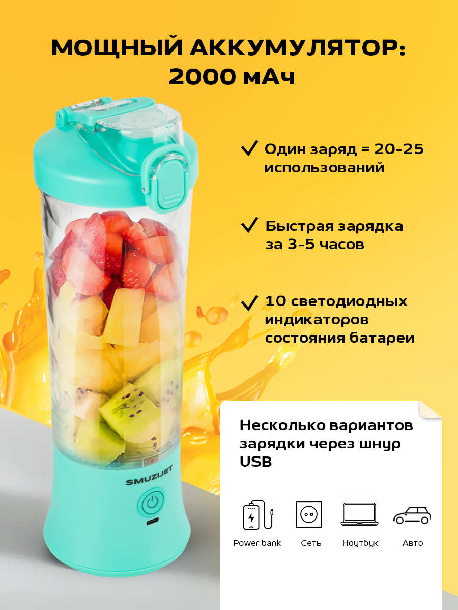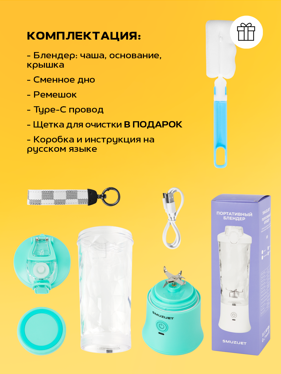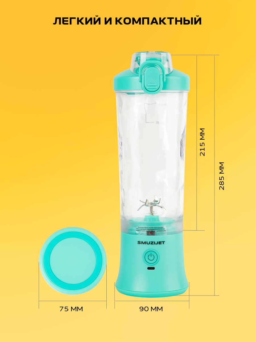 Портативный мини блендер SMUZIJET для смузи и коктейлей бирюзовый интересное: