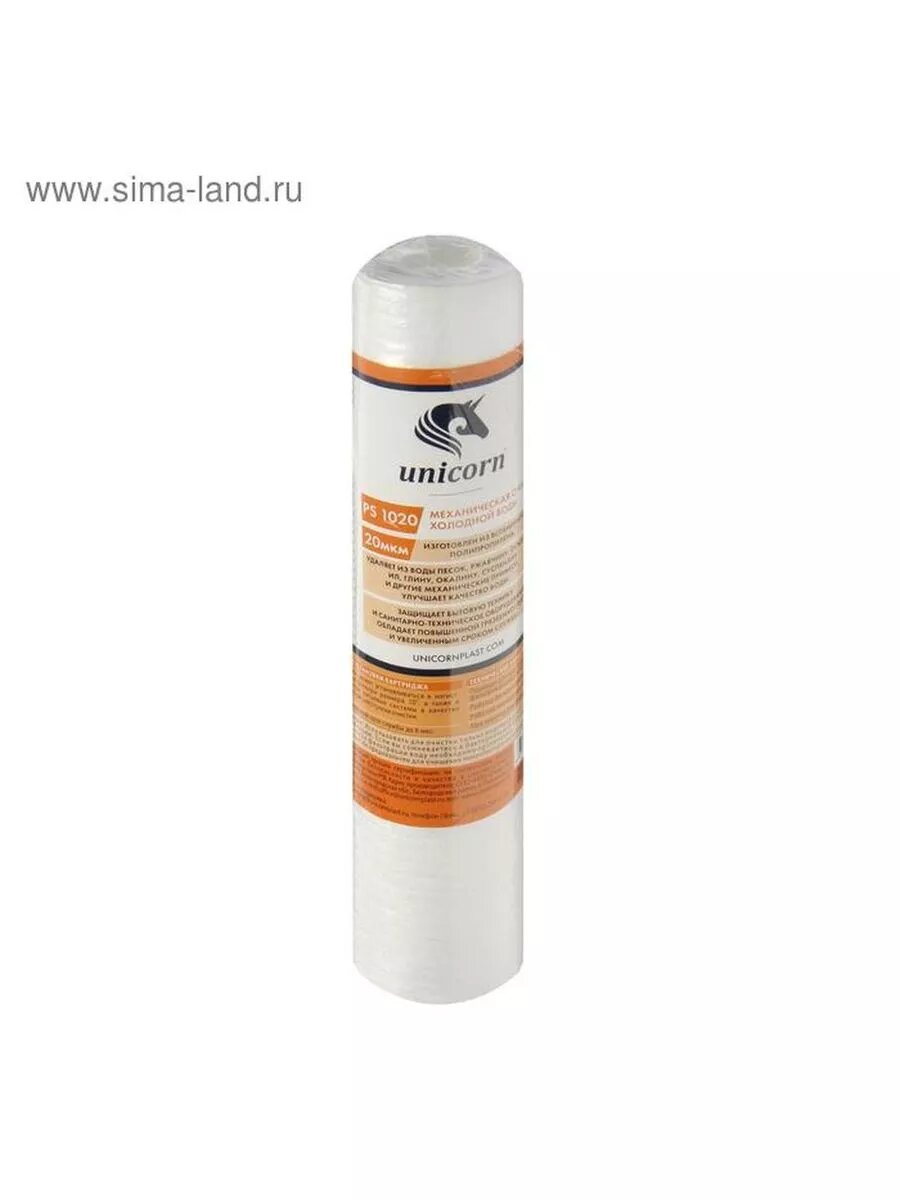 Картридж Unicorn 10SL, РS 1020 S, механическая очистка, из вспененного полипропилена, 20 мкм