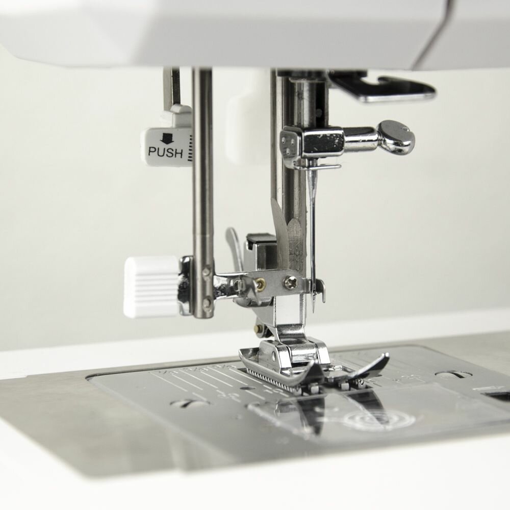 | Функциональные особенности швейного оборудования | Кнопка позиционирования иглы, Линейка на корпусе, Подсветка рабочей зоны, Реверс, Регулятор давления лапки на ткань, Регулятор длины стежка, Стабилизатор силы прокола, Шитье в нескольких направлениях, Шитье двойной иглой |