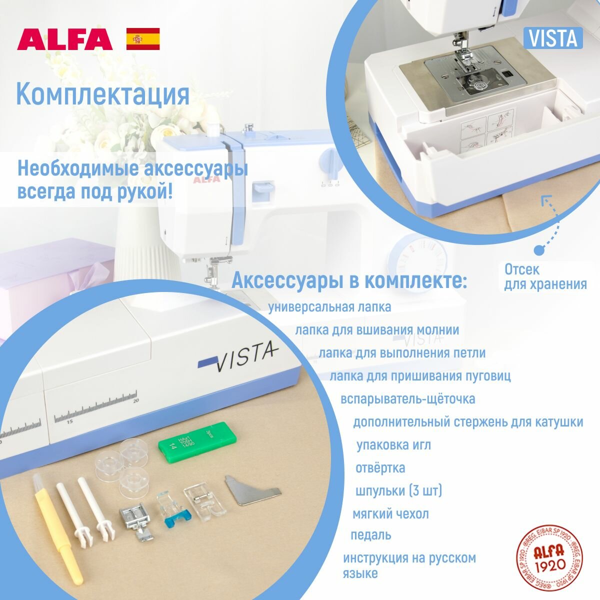 Ниже Вы можете прочитать отзывы на Швейная машина ALFA Vista, ознакомится с подробными характеристиками, посмотреть интересные обзоры и фотографии на Швейная машина ALFA Vista.