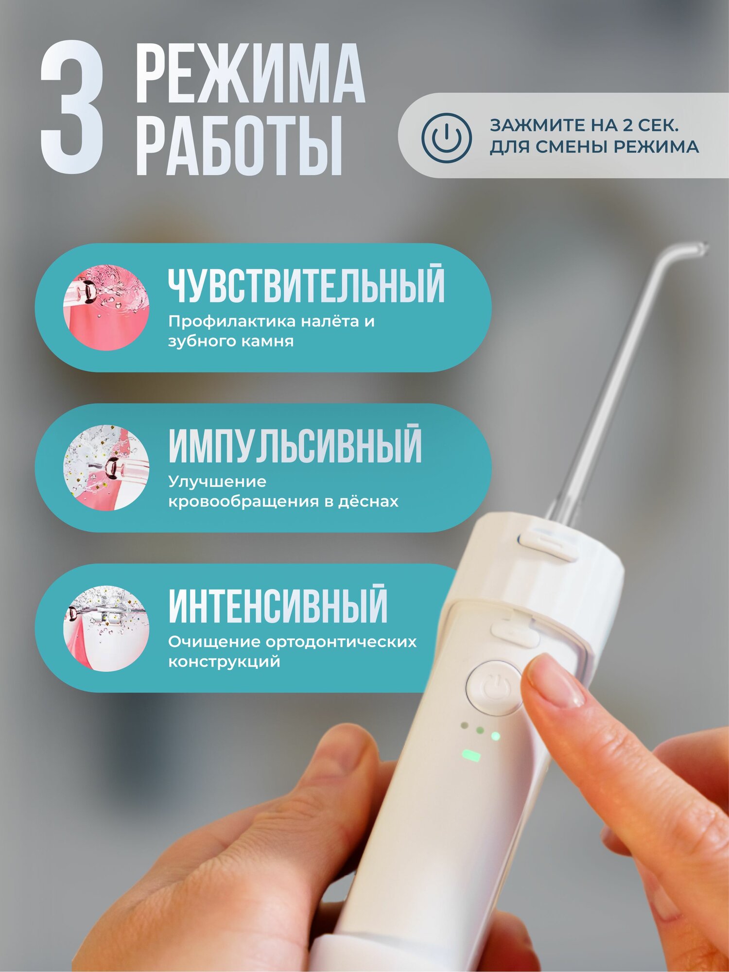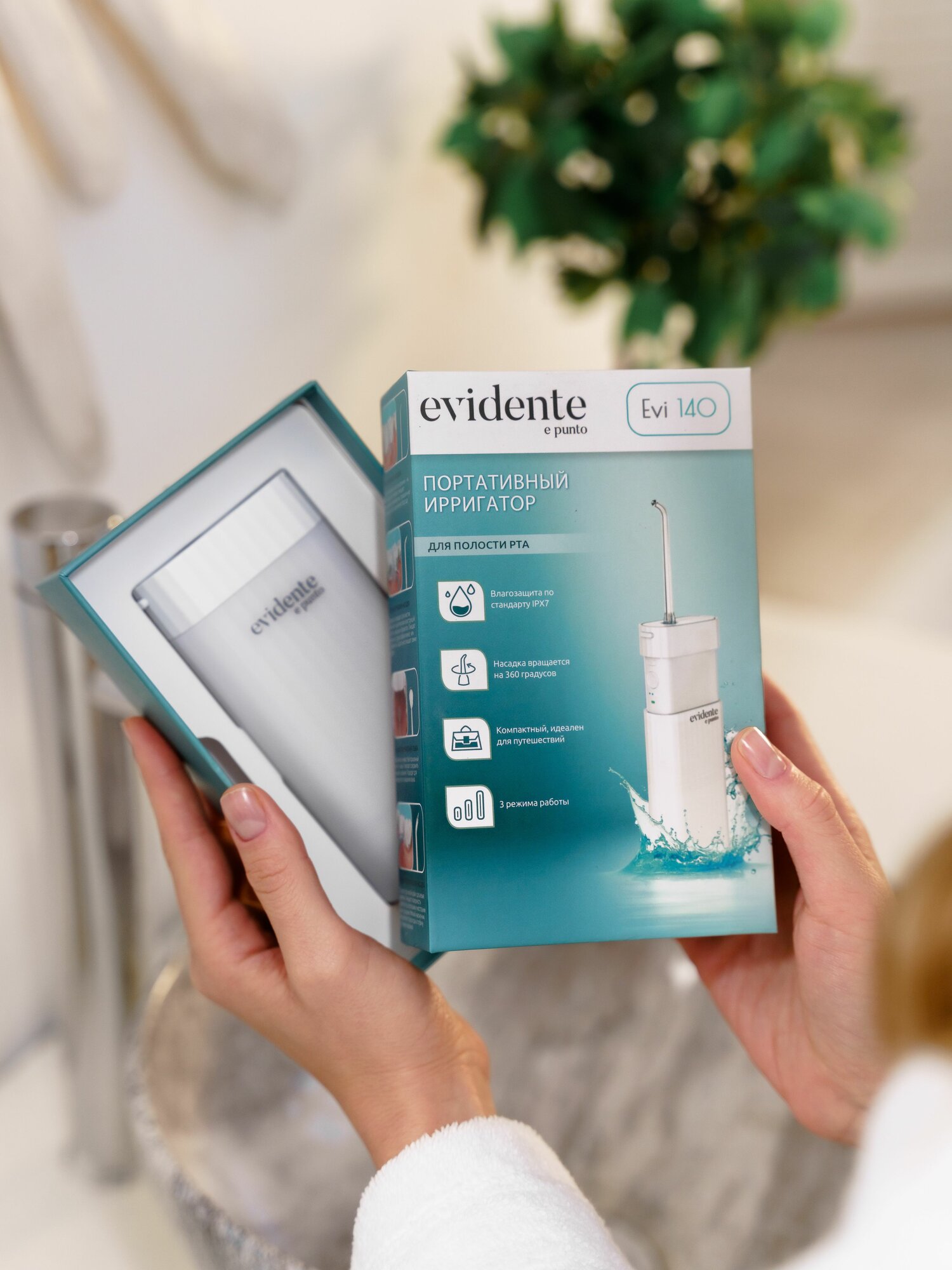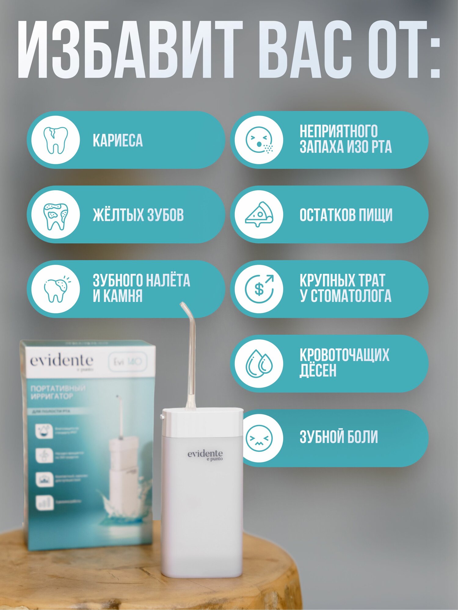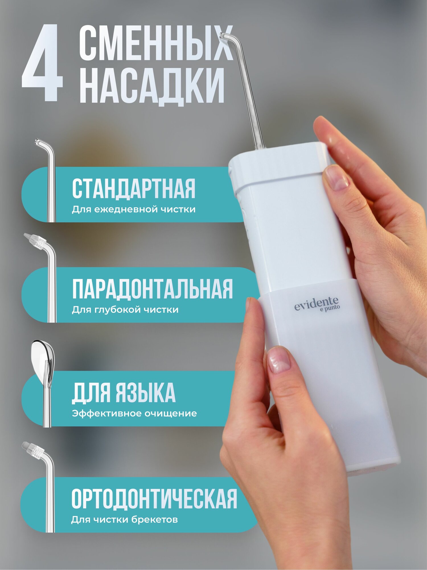 Ирригатор для полости рта портативный Evidente, медицинский, беспроводной, 3 режима, насадки, с зарядным устройством, компактный интересное: