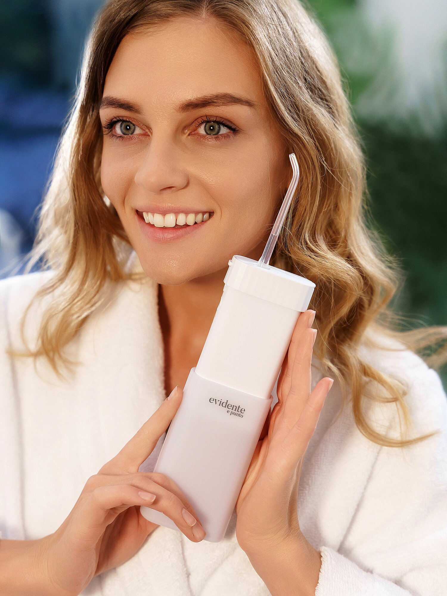Купить Ирригатор для полости рта портативный Evidente, медицинский, беспроводной, 3 режима, насадки, с зарядным устройством, компактный