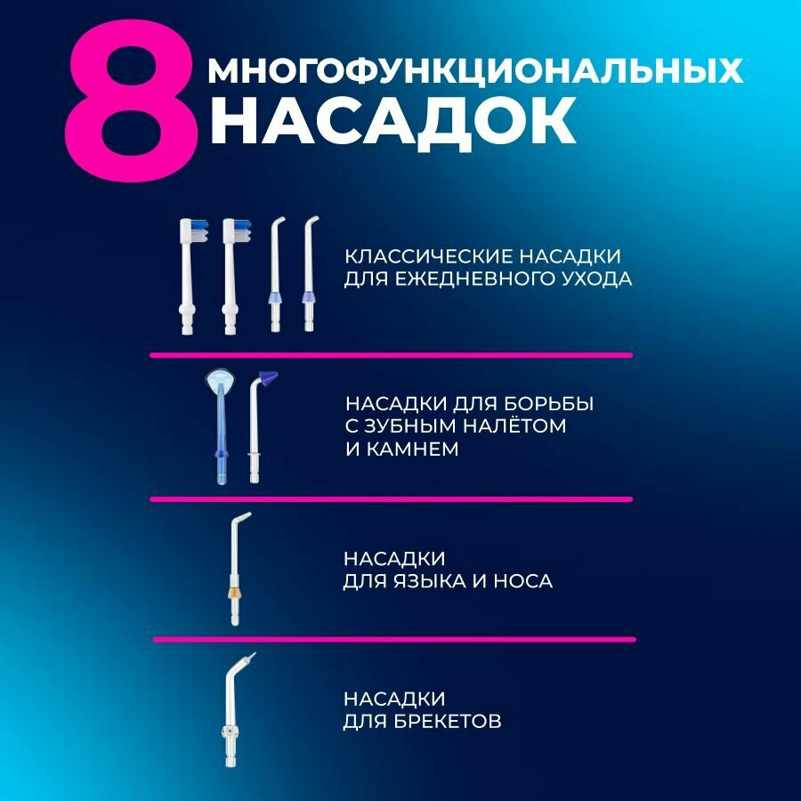 Купить Ирригатор для зубов портативный, ирригатор для полости рта, 8 насадок в комплекте
