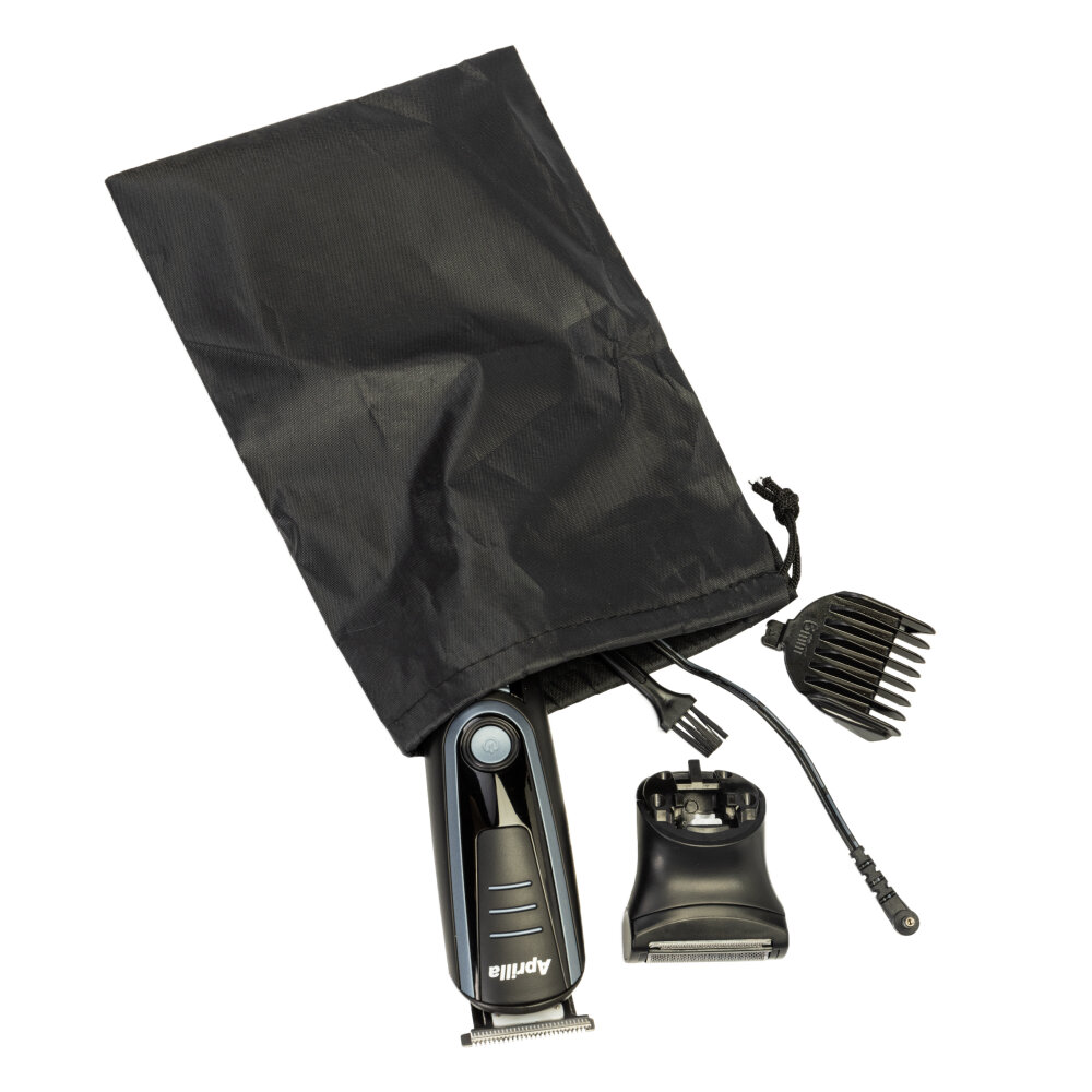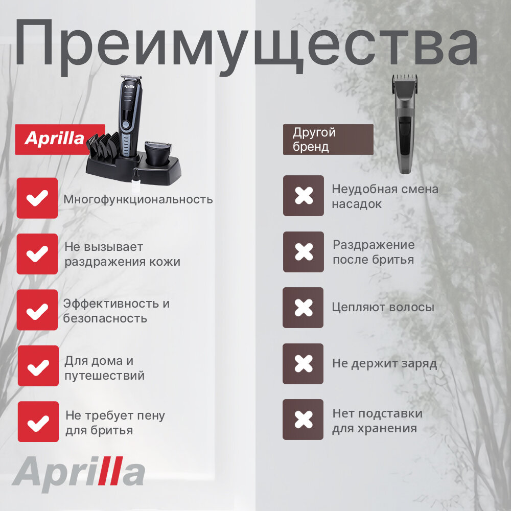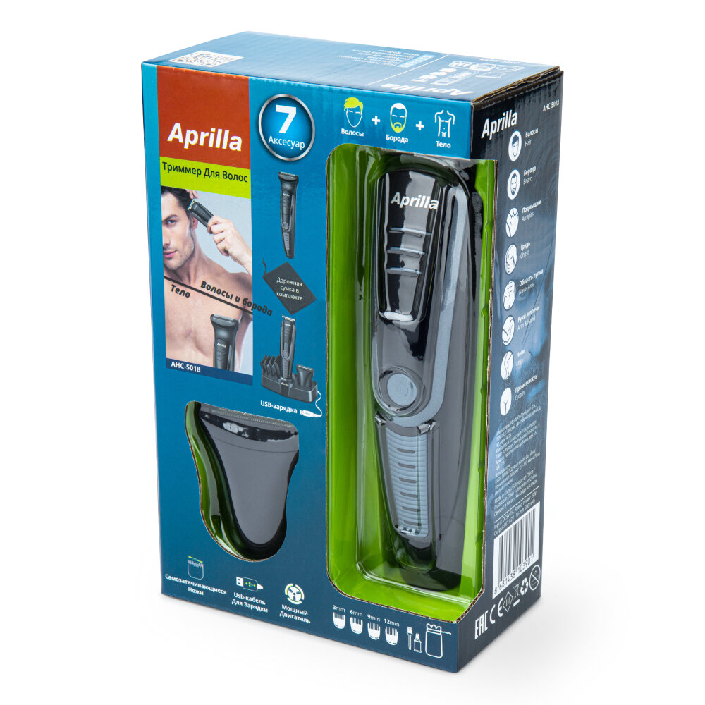 Беспроводной триммер для бороды и усов, машинка для бритья Aprilla AHC-5018, 4 насадки для стрижки и насадка шейвер для гладкого бритья интересное: