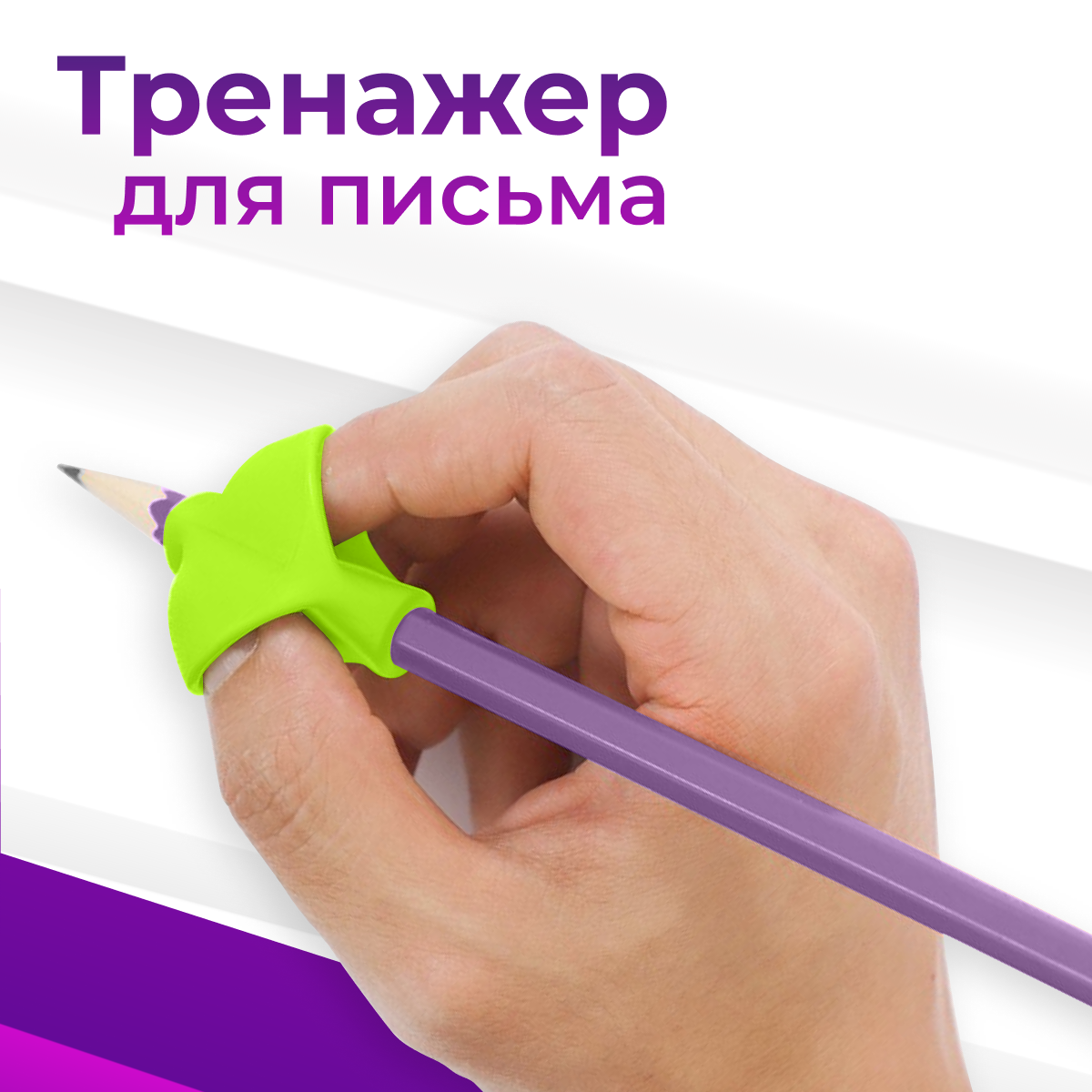 Тренажер для постановки письма / Насадка ручки для исправления почерка / Силиконовый держатель на ручку для детей / Сиреневый