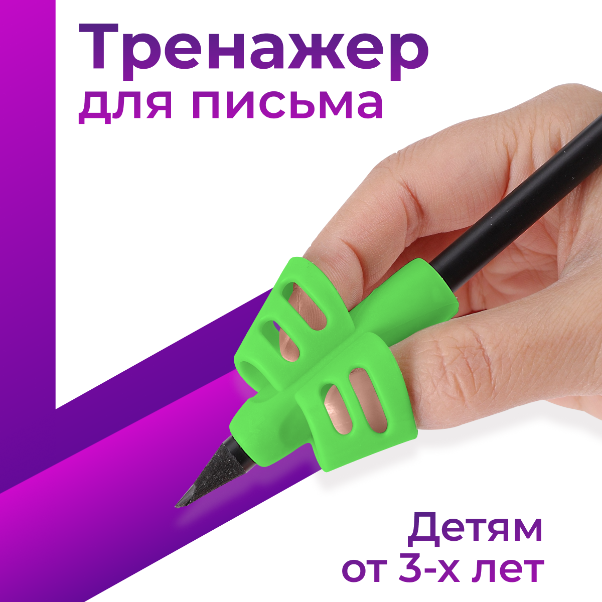 Тренажер для постановки письма / Насадка ручки для исправления почерка / Силиконовый держатель на ручку для детей / Сиреневый