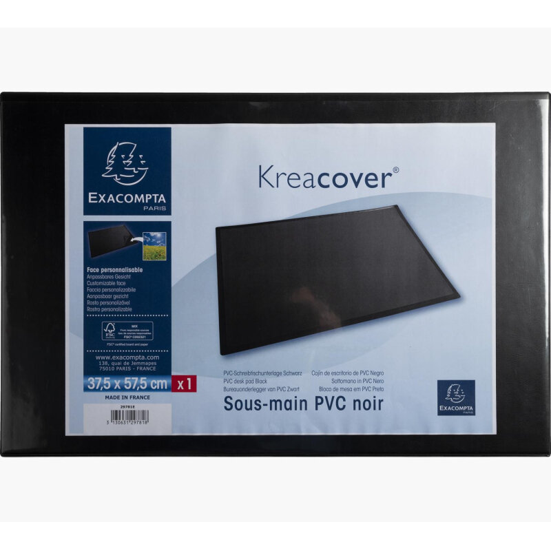 Купить Коврик на стол Exacompta Черный, с прозрачным листом, 57,5х37,5 см