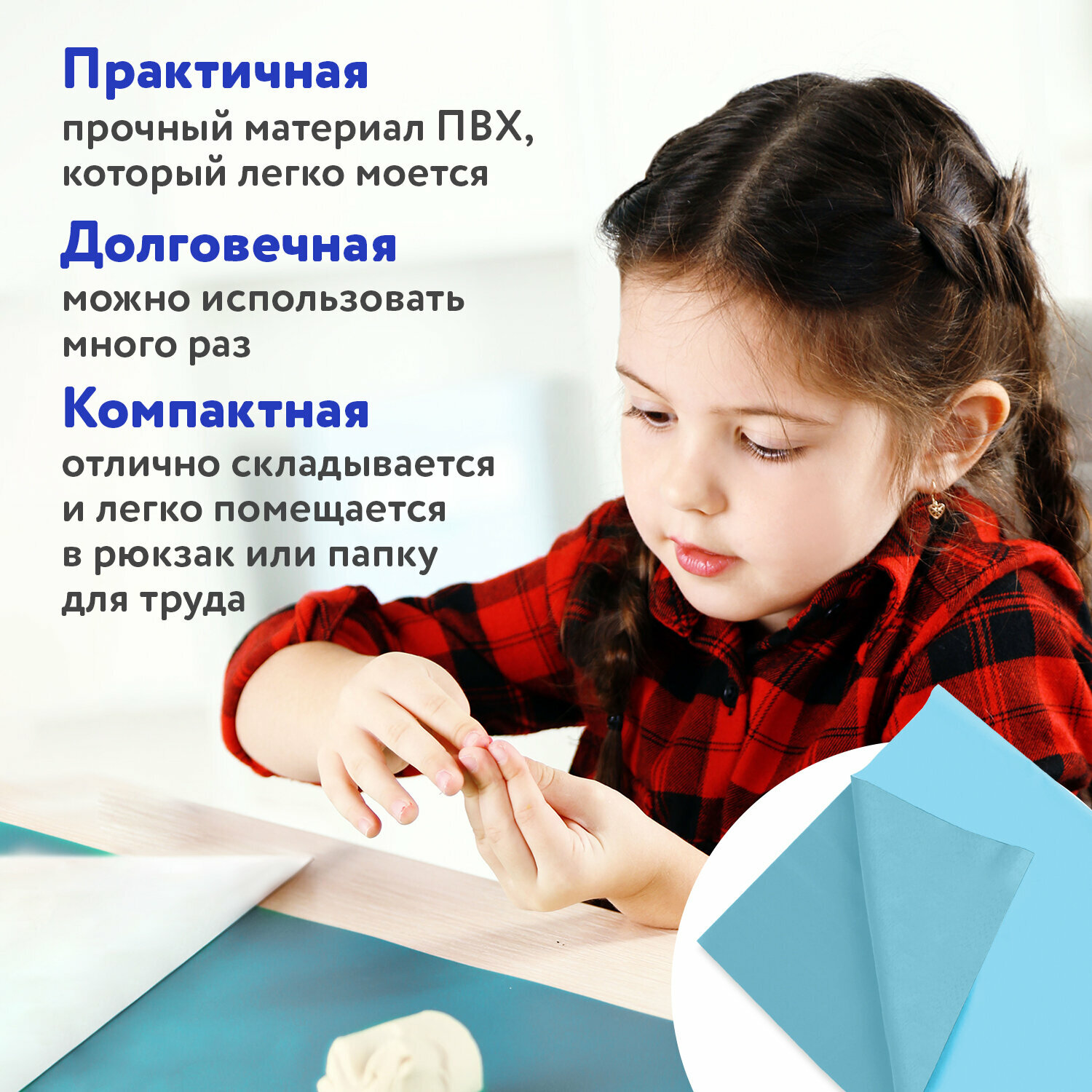 Клеёнка настольная пифагор для уроков труда, ПВХ, голубая, 69х40 см, 228116, 2шт в компл. интересное: