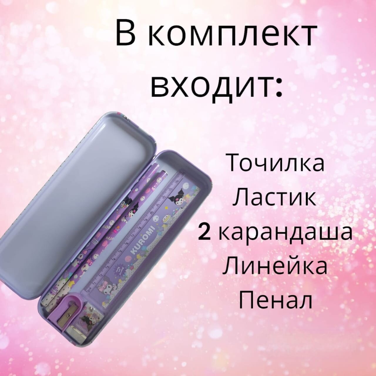 | В комплекте | Пенал 1шт, ластик 1шт, точилка 1шт, обычных карандаша 2шт, линейка 1шт |