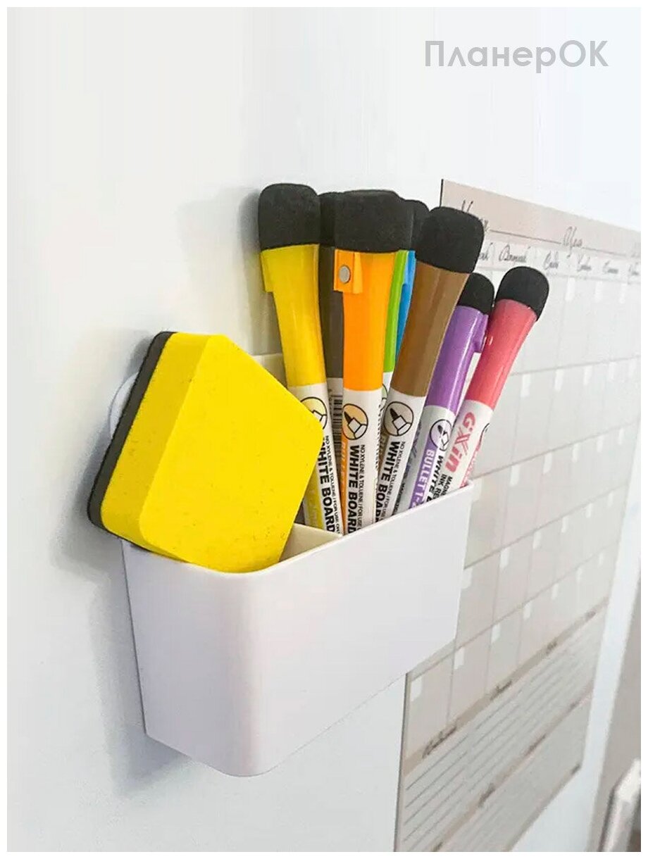 Подставка магнитная для маркеров и мелков 10х12 см (белый) / магнитный держатель для магнитной доски интересное: