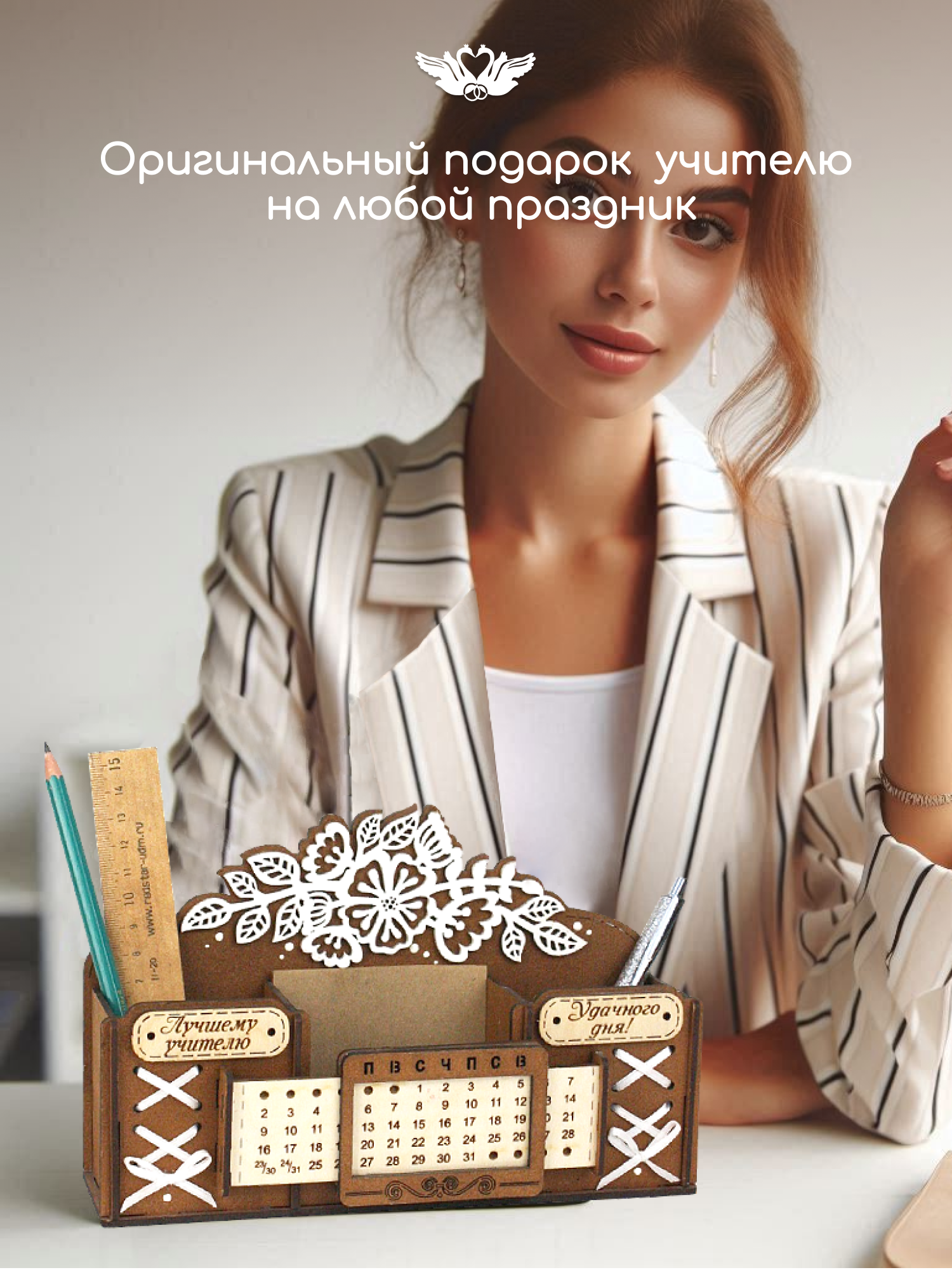 СохранитьОрганайзер для канцелярии Учителю. Подарок на День Учителя (22*7*14) МДФ. ТМ "Канышевы" интересное: