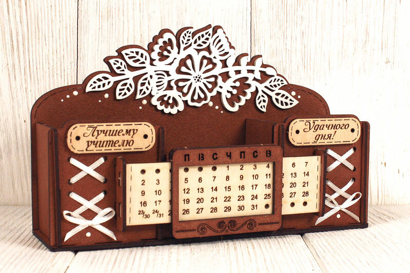 | В комплекте | Карандашница с вечным календарём. МДФ, фанера, окраш. морилкой, 1 шт. |