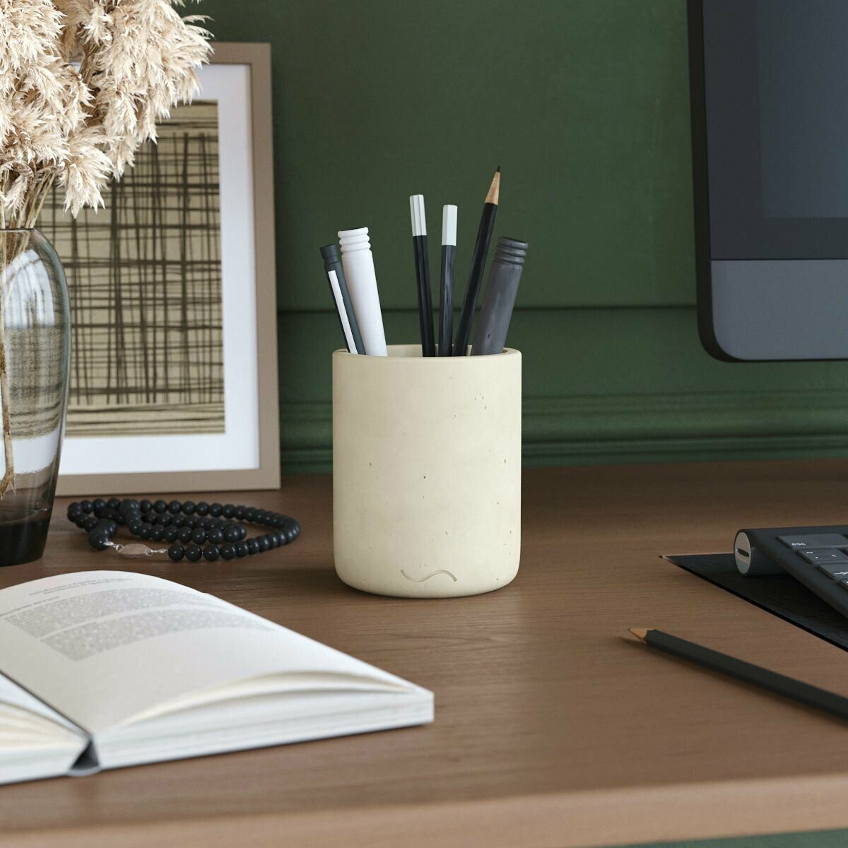 Стакан канцелярский Astrid, 9x11 см, бетон, кремовый матовый интересное:
