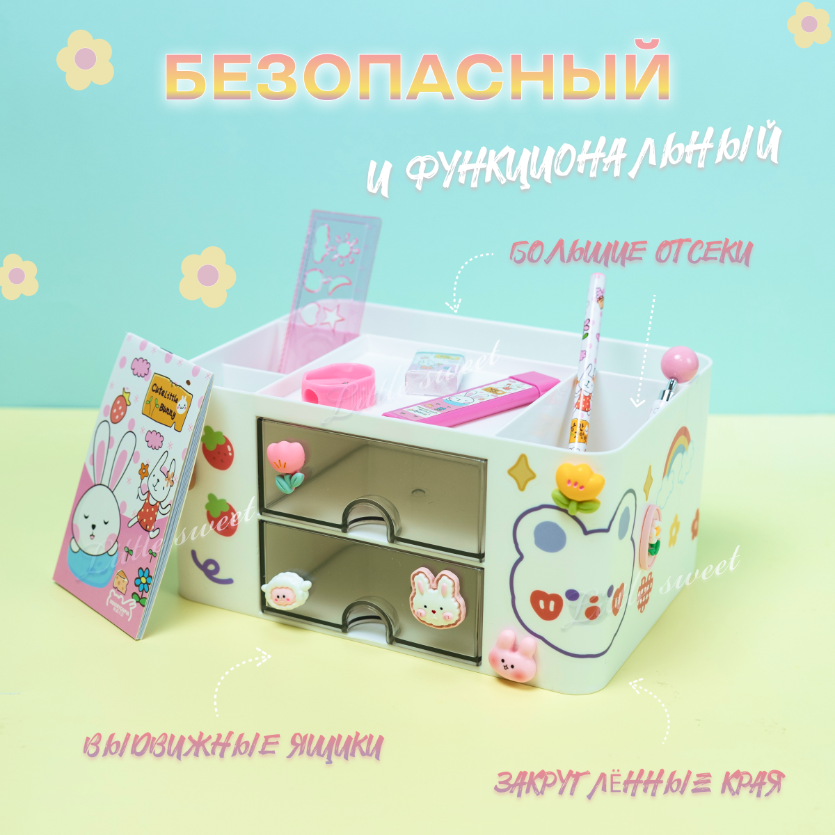 | В комплекте | Органайзер, наклейки, 3D-фигурки, клей, набор канцелярских товаров |