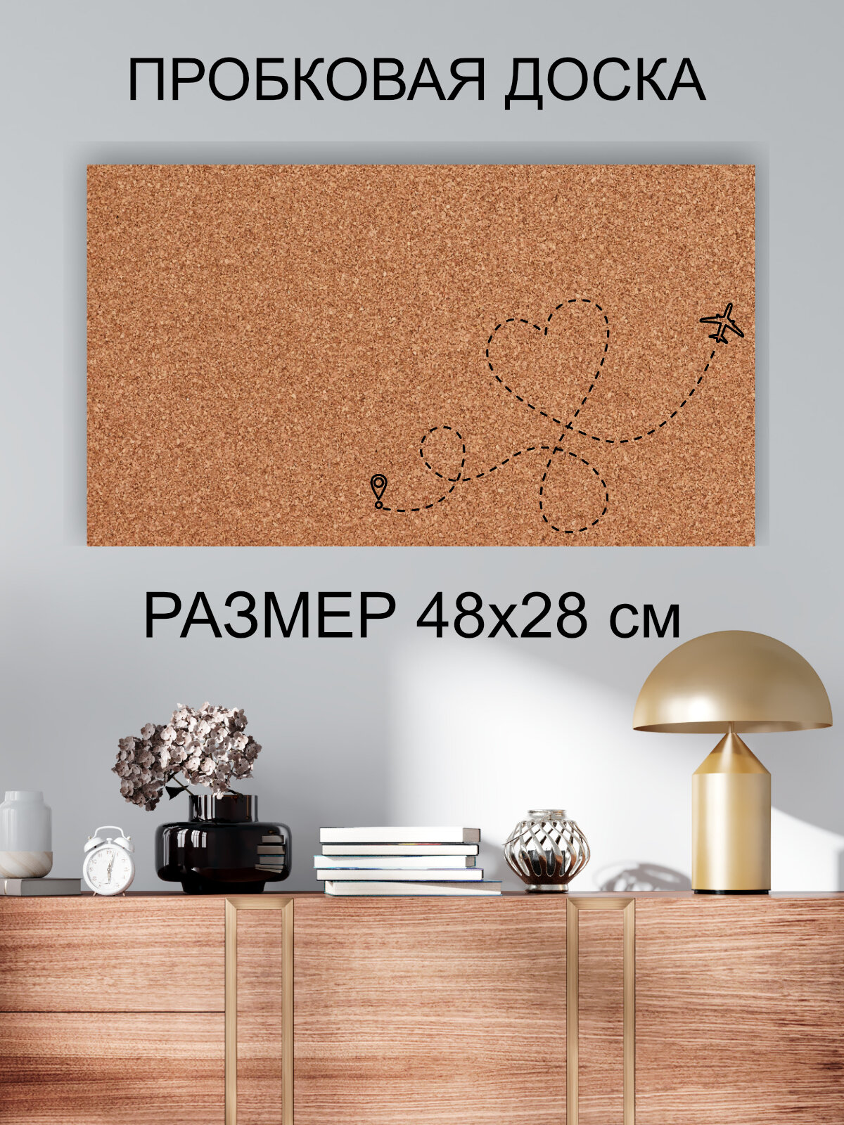 Пробковая доска' Пунктир самолет ' 48х28 см. (Путь к успеху) интересное: